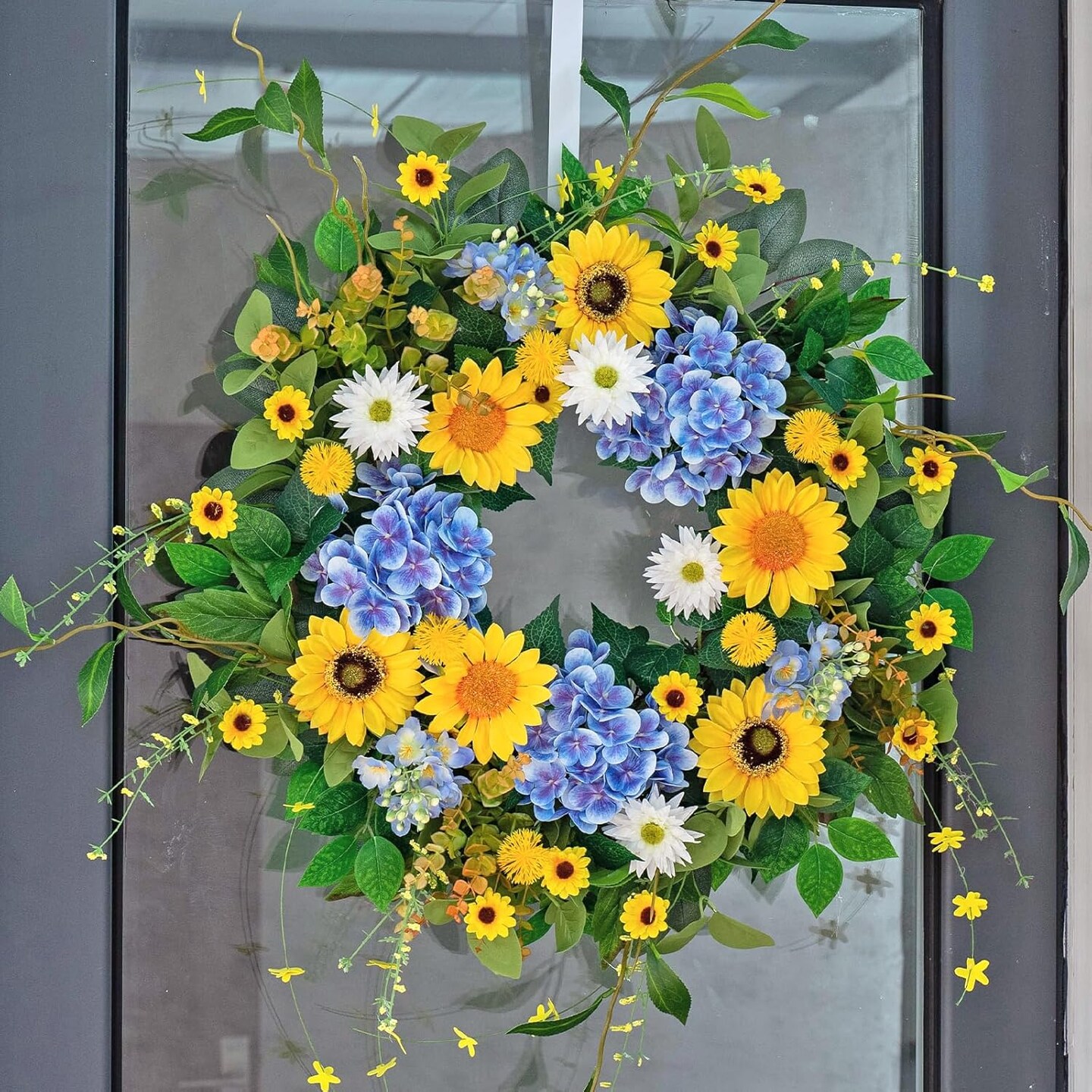 Summer Floral Wreaths for Front Door 24 Inch Artificial Eucalyptus Sunflower Daisy Flower Wreath
