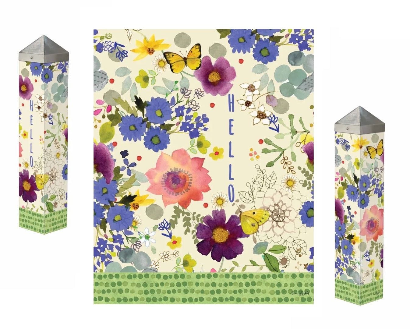 Summer Flowers Art Pole 20 Inches Tall Hello
