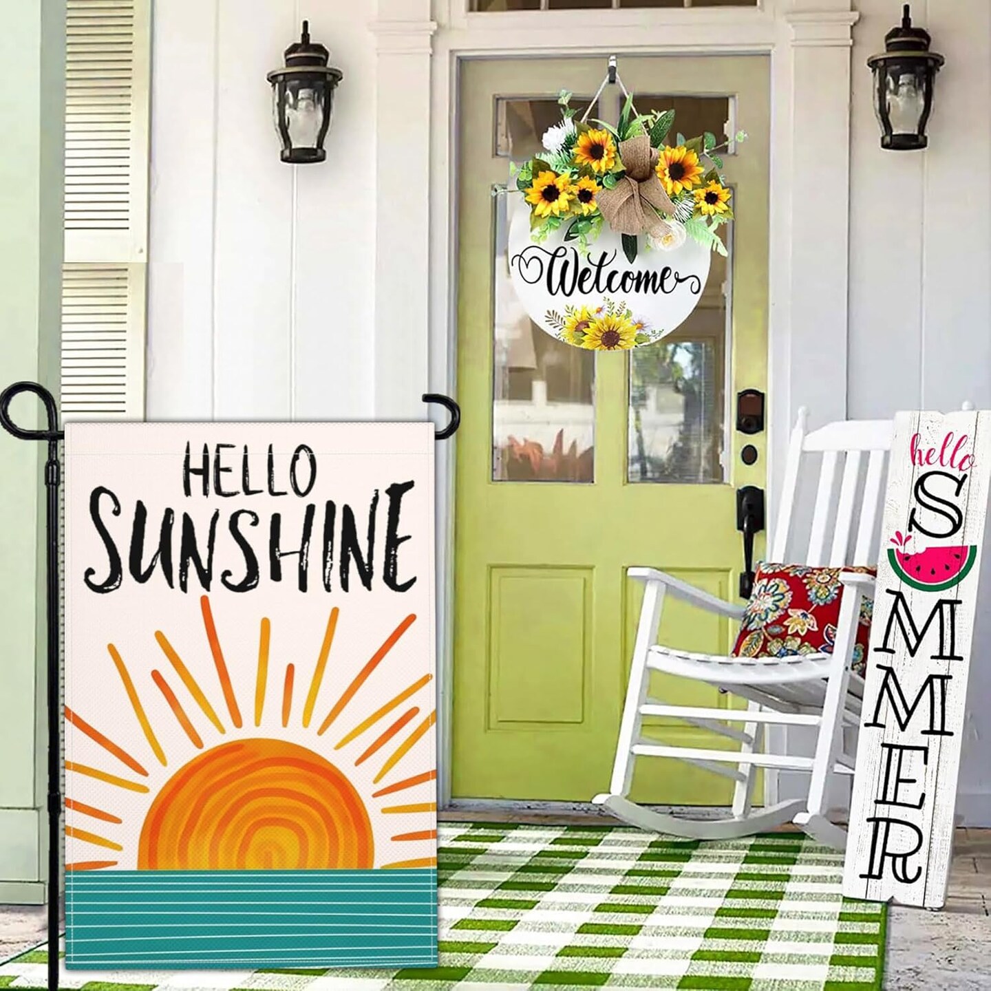 Summer Garden Flags for Outside 12×18 Inch Double Sided 3Ply Polyester Small Seasonal Welcome Summer Yard Garden Flag Outdoor Summer Decorations Farmhouse Beach Lawn Holiday Garden Flag
