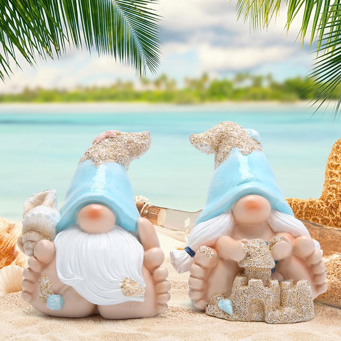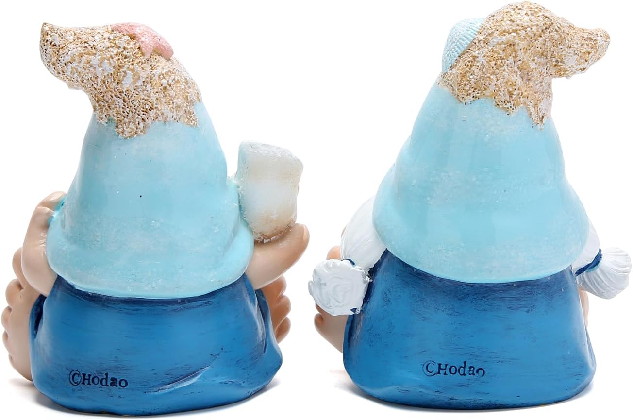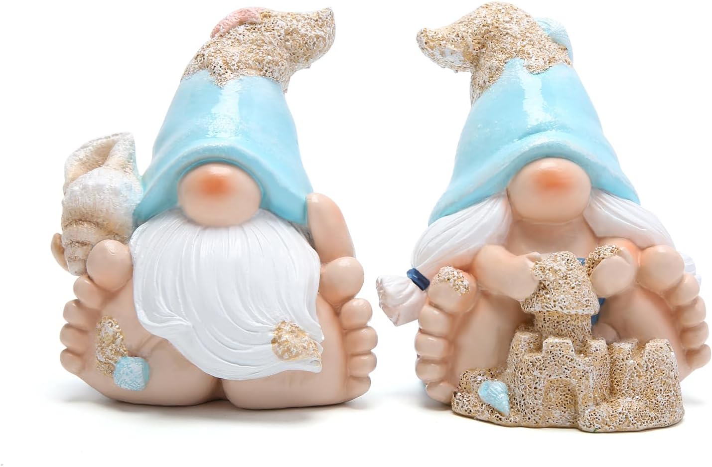 Summer Garden Gnomes Decorations 2pcs Beach Ocean Topics Figurines Conch Beach Castle Cute Bigfoot Gnome Nisse Scandinavian Dwarf Elf Indoor Home Decor