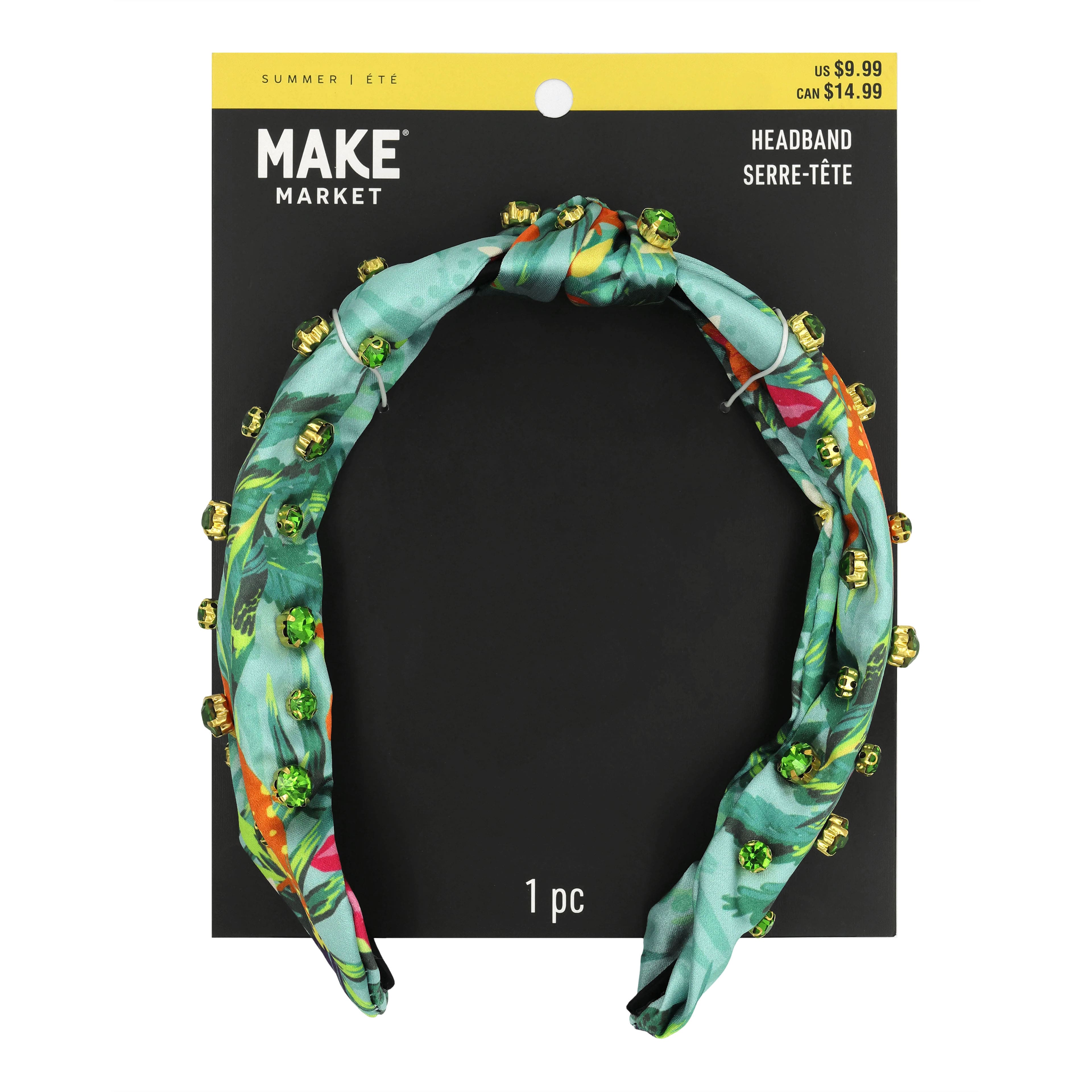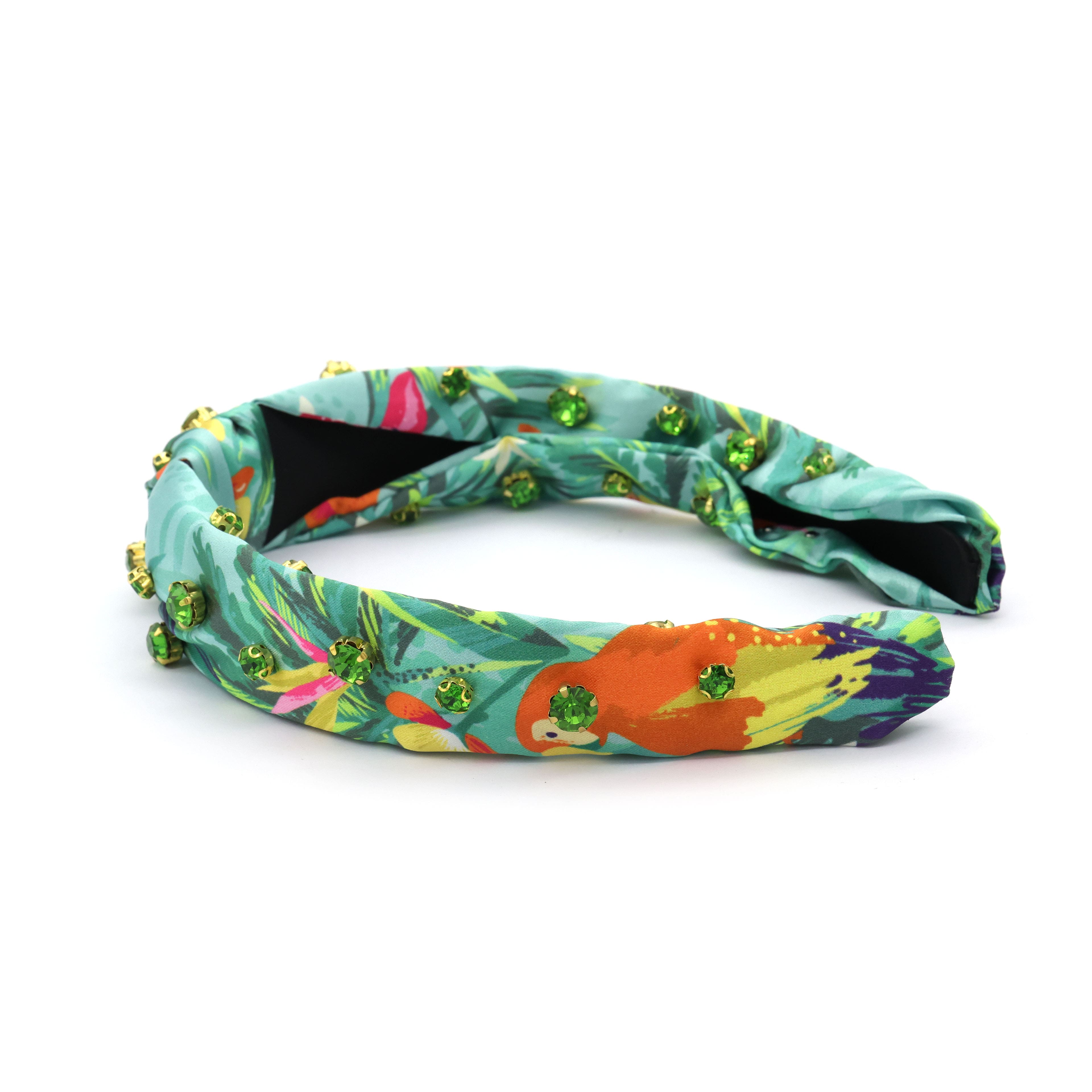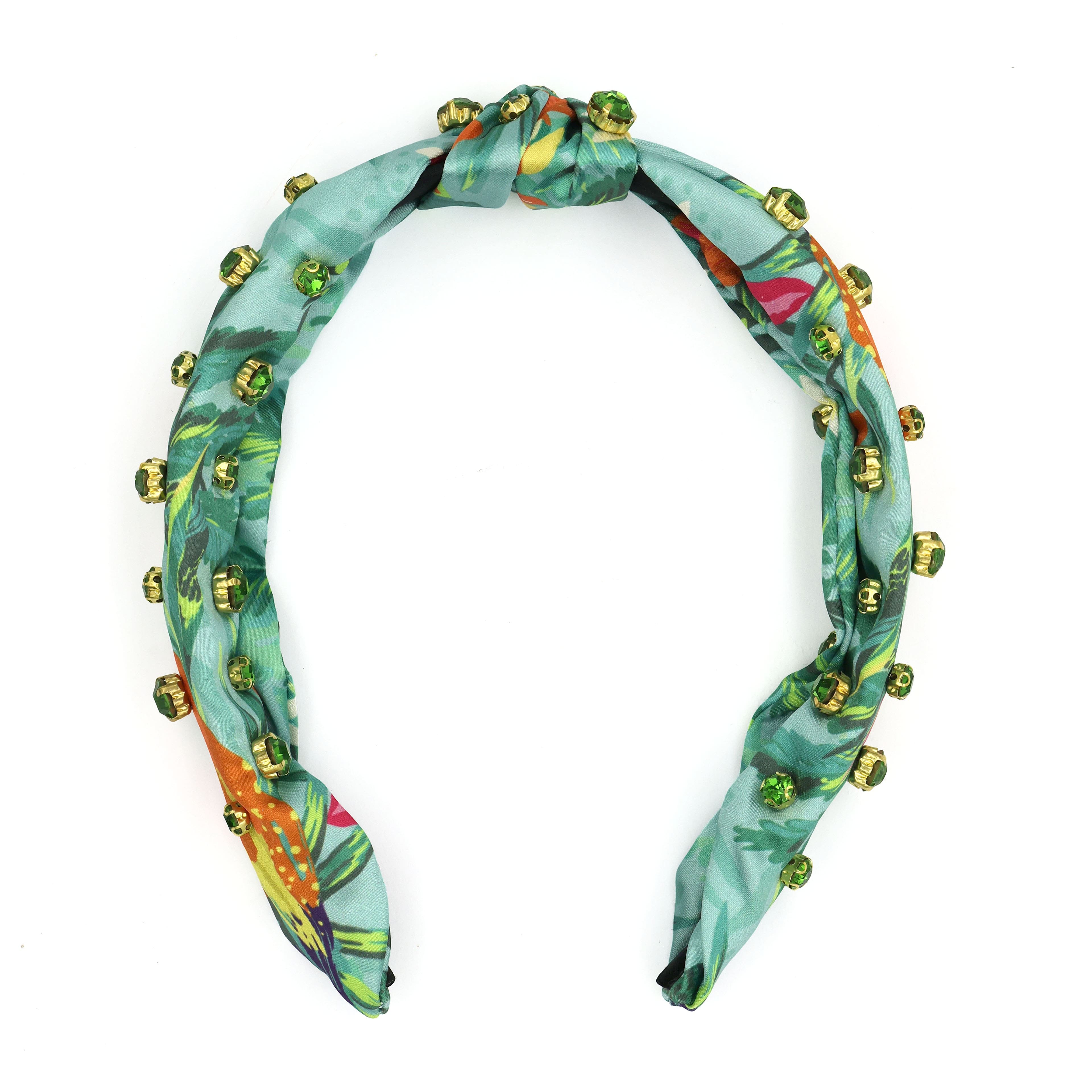 Summer Green Gem-Studded Tropical Floral Fabric Headband by Make Market®