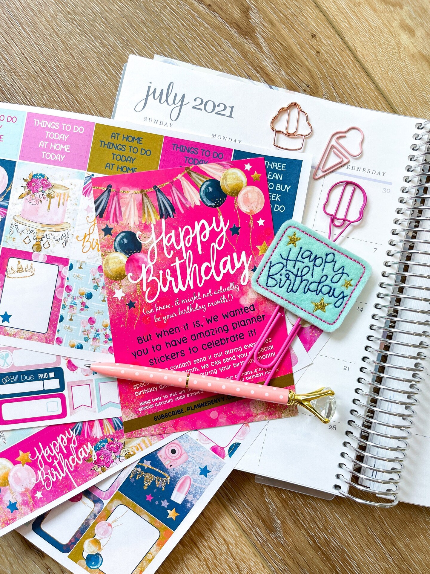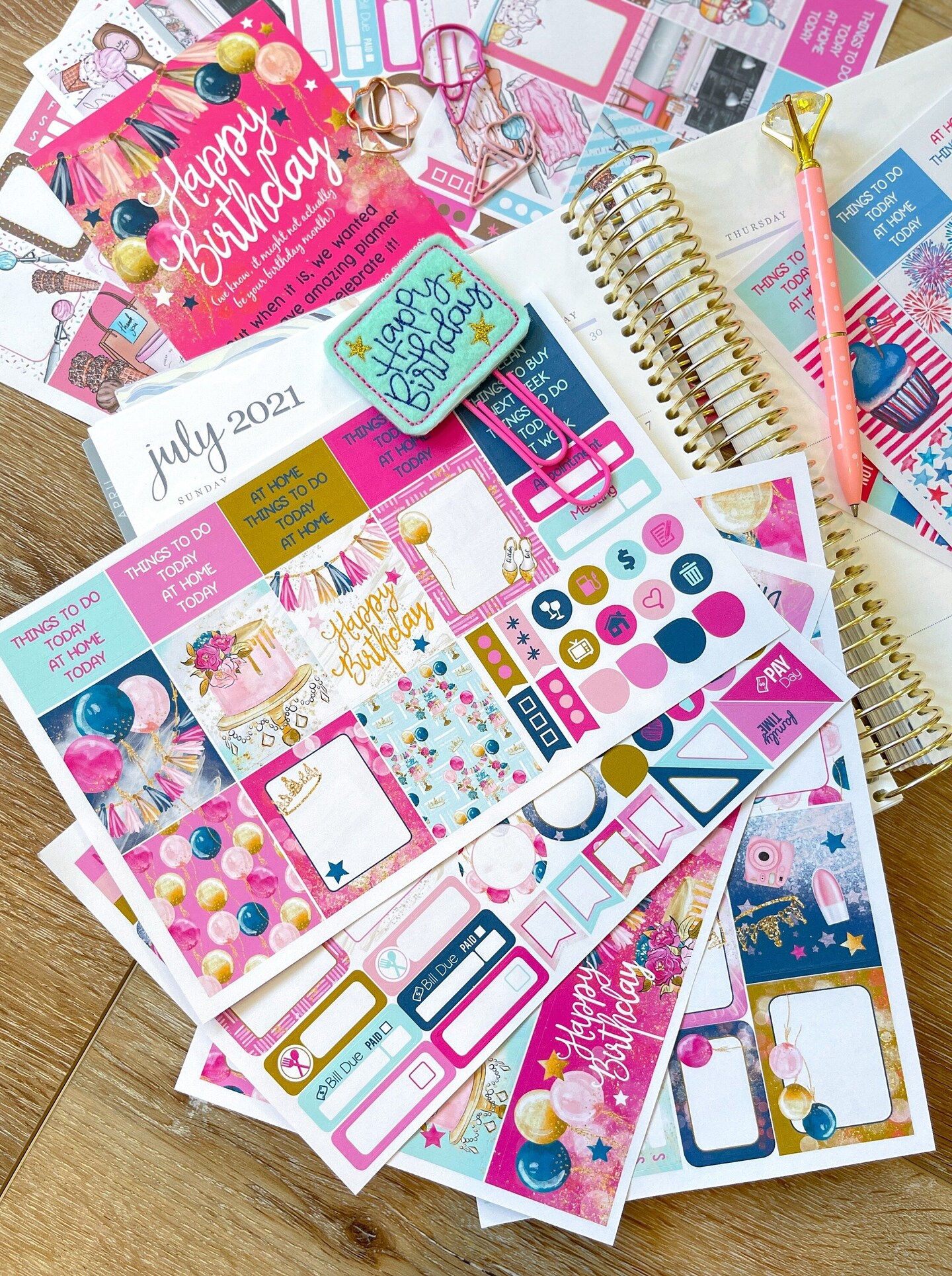 Summer Ice Cream, Birthday & 4th Of July Themed Box of Planner Stickers & Accessories (#SUB2021007)