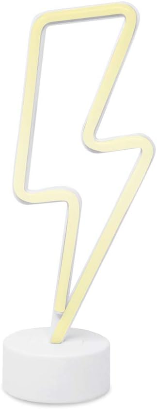 Summer LED Neon Yellow Lightning Bolt Tabletop Lamp – Battery Powered Night Light with White Base for Bedroom, Party, and Room Décor