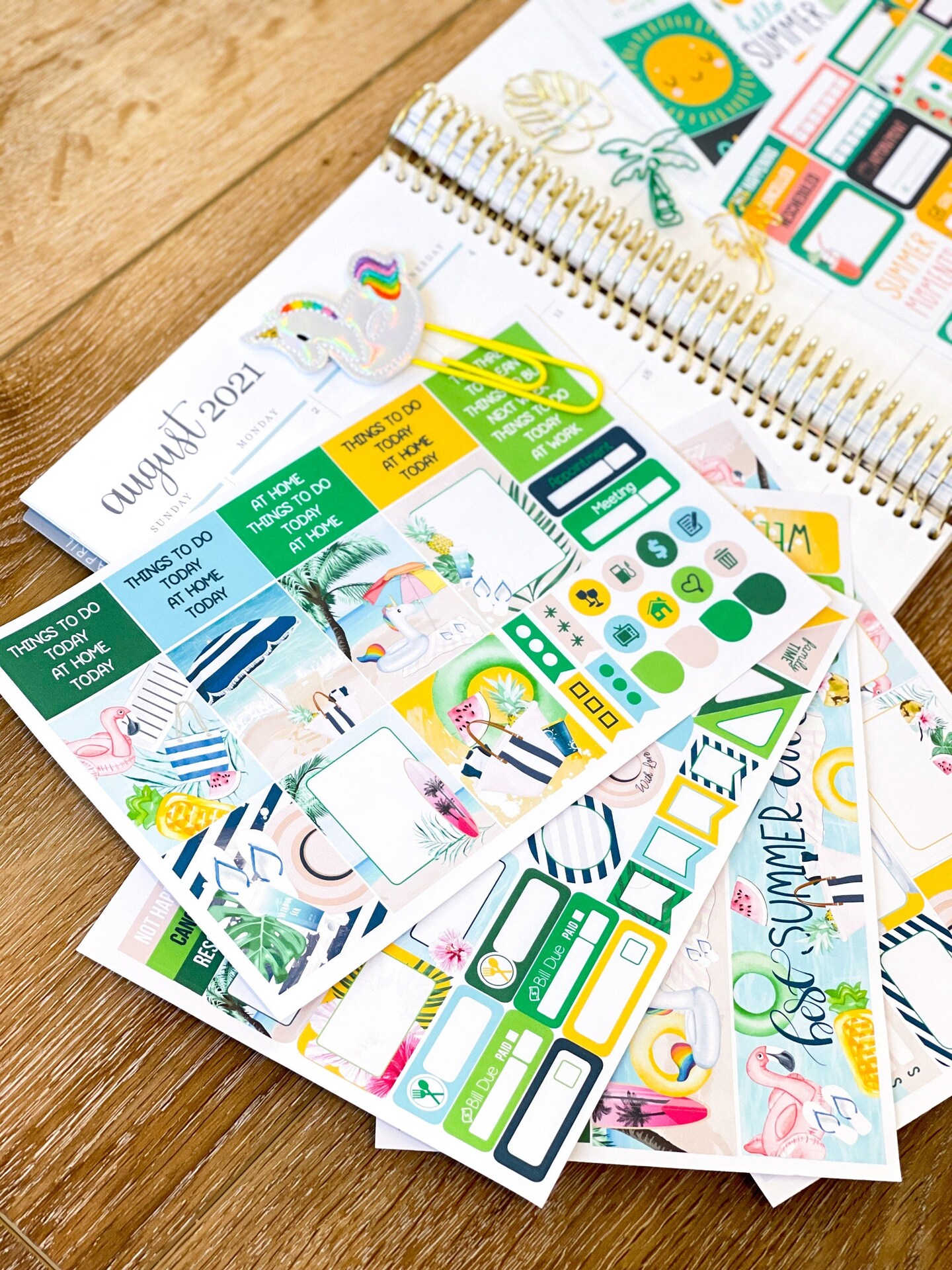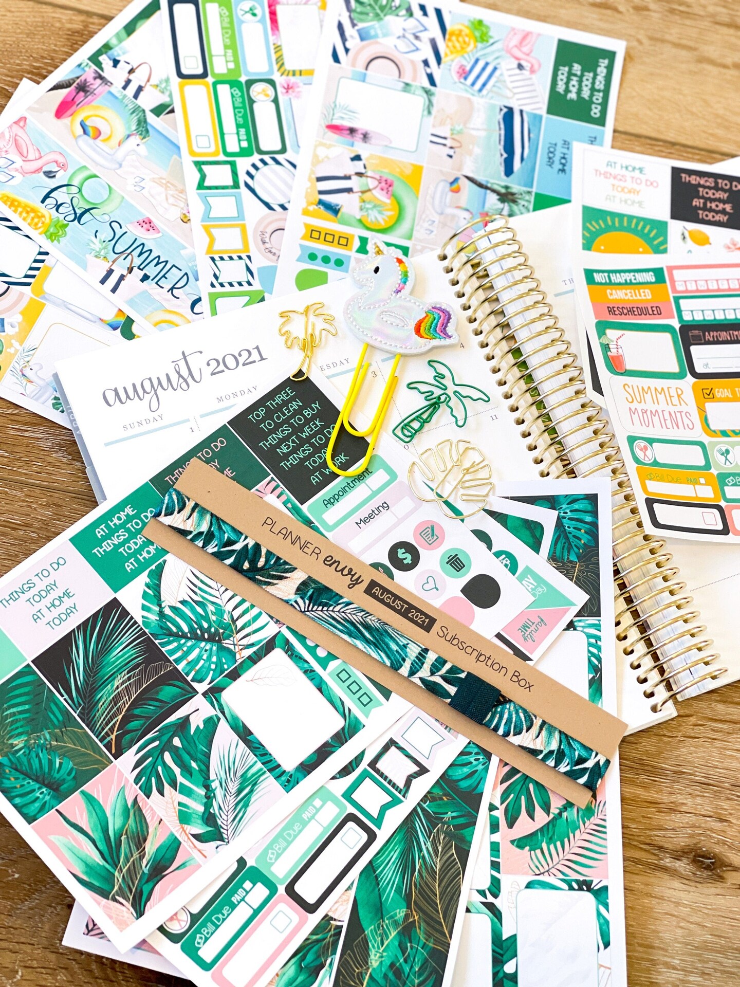 Summer Lush Tropical, Pool Days, Vacation & Summer Break Themed Box of Planner Stickers & Accessories (#SUB2021008)