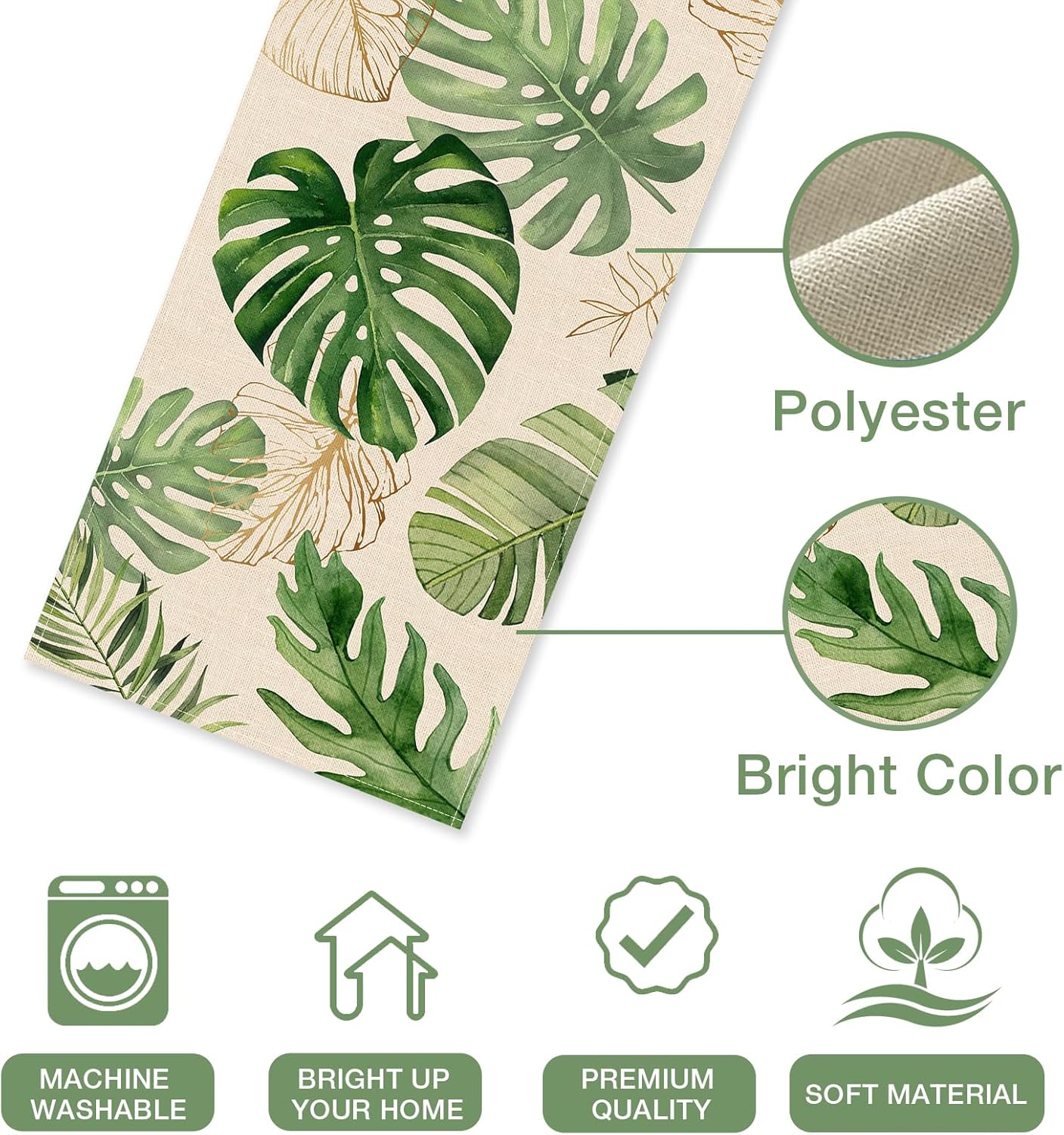 Summer Palm Leaves Tropical Table Runner – 13x72 Inch Monstera Greenery Decor for Home, Kitchen, Dining, Indoor/Outdoor Hawaii Luau, Spring, and Anniversary Party Decorations