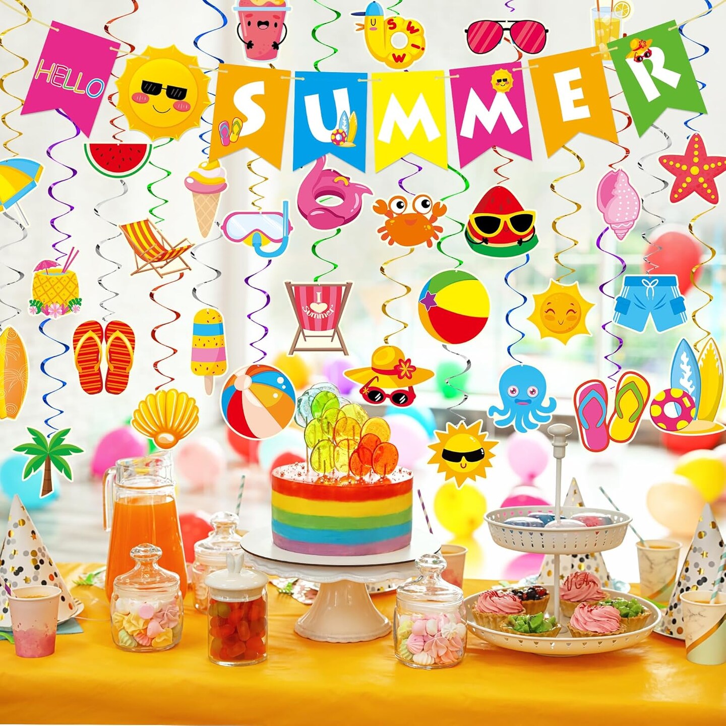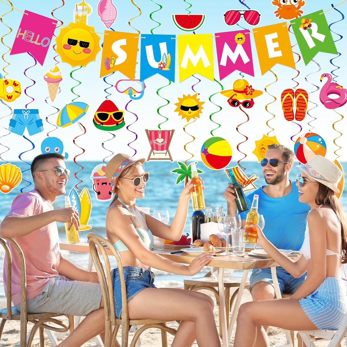 Summer Party Decorations - 61 Pcs Beach Pool Party Decorations Hello Summer Banner Pool Beach Hanging Streams Decor for Home Office School Classroom