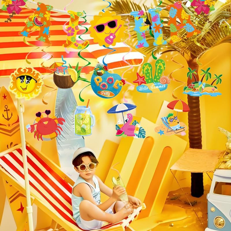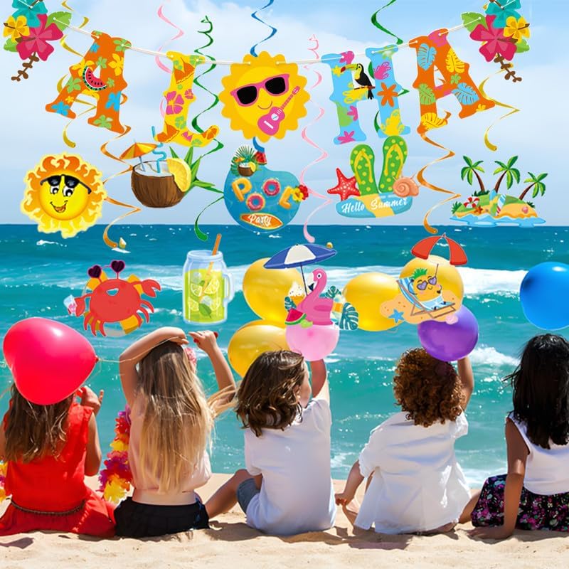 Summer Party Decorations Set, Banner Balloons Summer Foil Hanging Swirls (37 Pcs)
