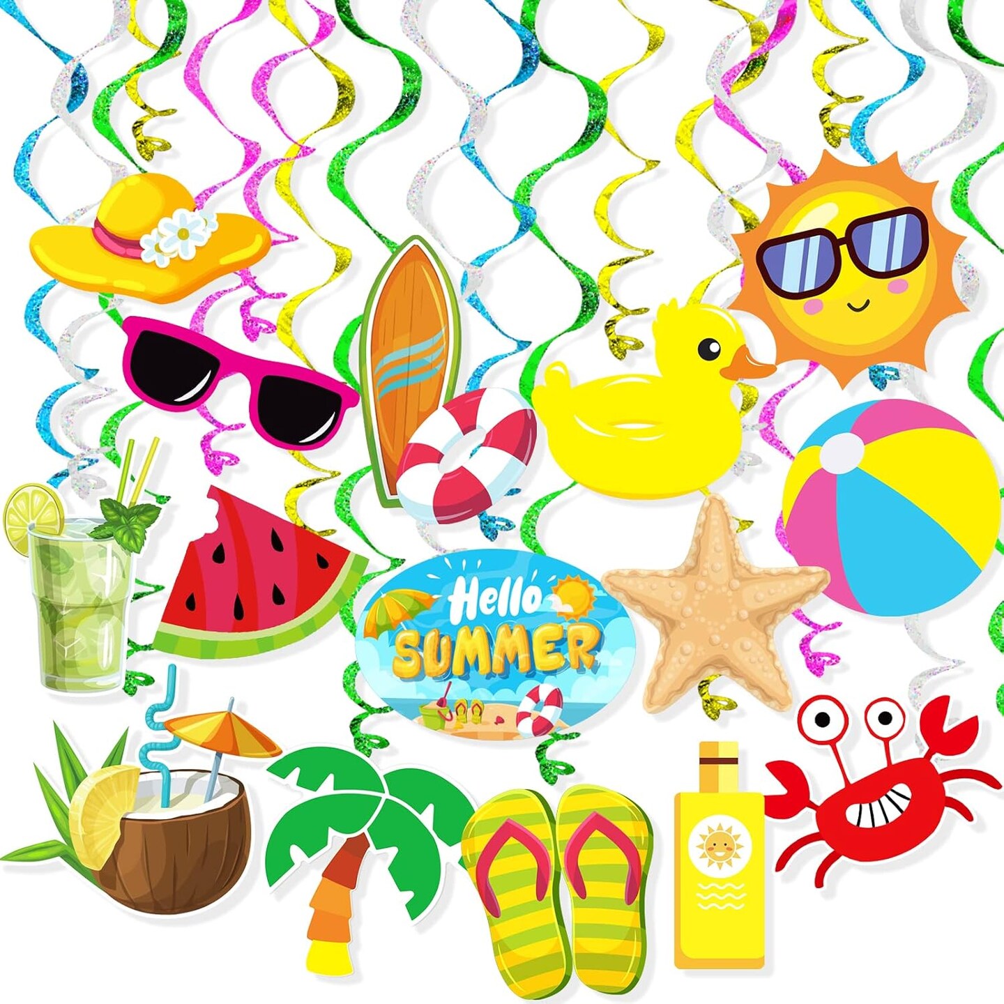 Summer Pool Beach Hanging Swirls Banner Decor 30 Pack Foil Ceiling Hanging Swirls Streams Banner Decorations Garland for Kids Luau Hawaii Celebrating Events Birthday Party Supplies Room Wall Decor