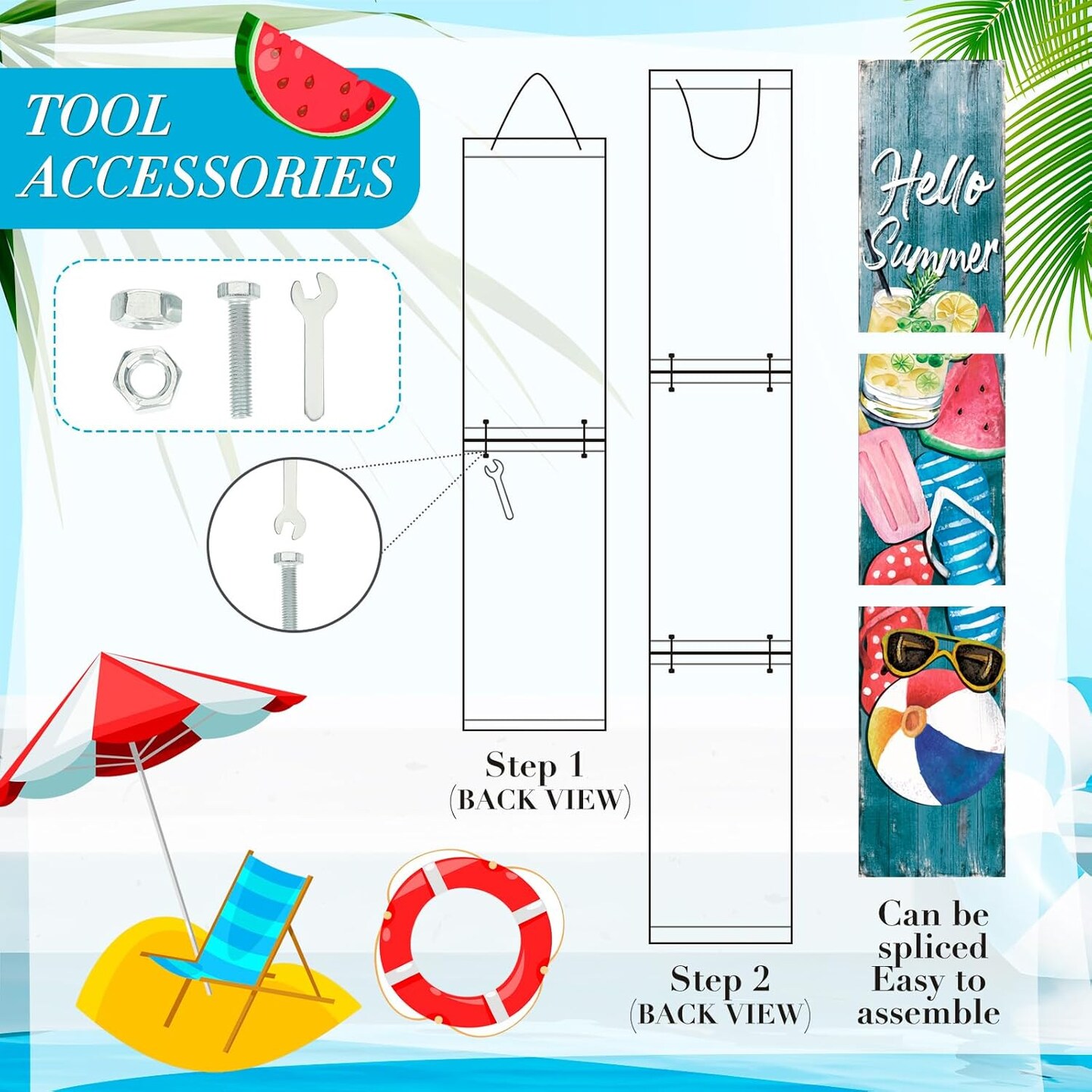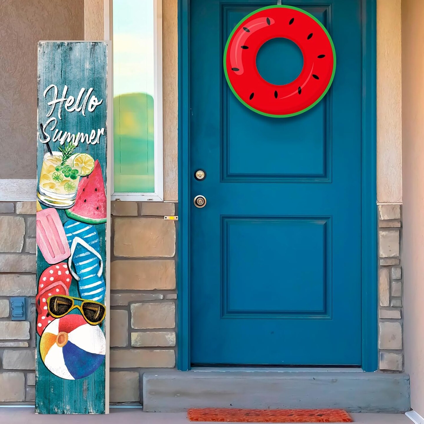 Summer Porch Sign Wooden Summer Sign for Front Porch Standing Vertical Welcome Porch Sign Rustic Watermelon Sunglasses Front Porch Decor for Farmhouse Door Porch Decoration, 42" H