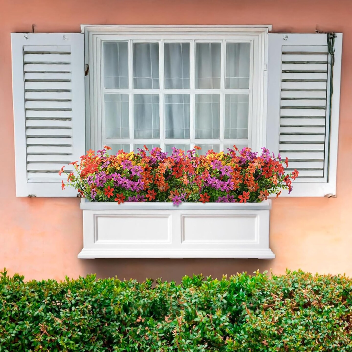 Summer Potted Artificial Flowers for Outdoors, 12 Bundles Multicolor Faux Silk Flower Spring Summer Decoration