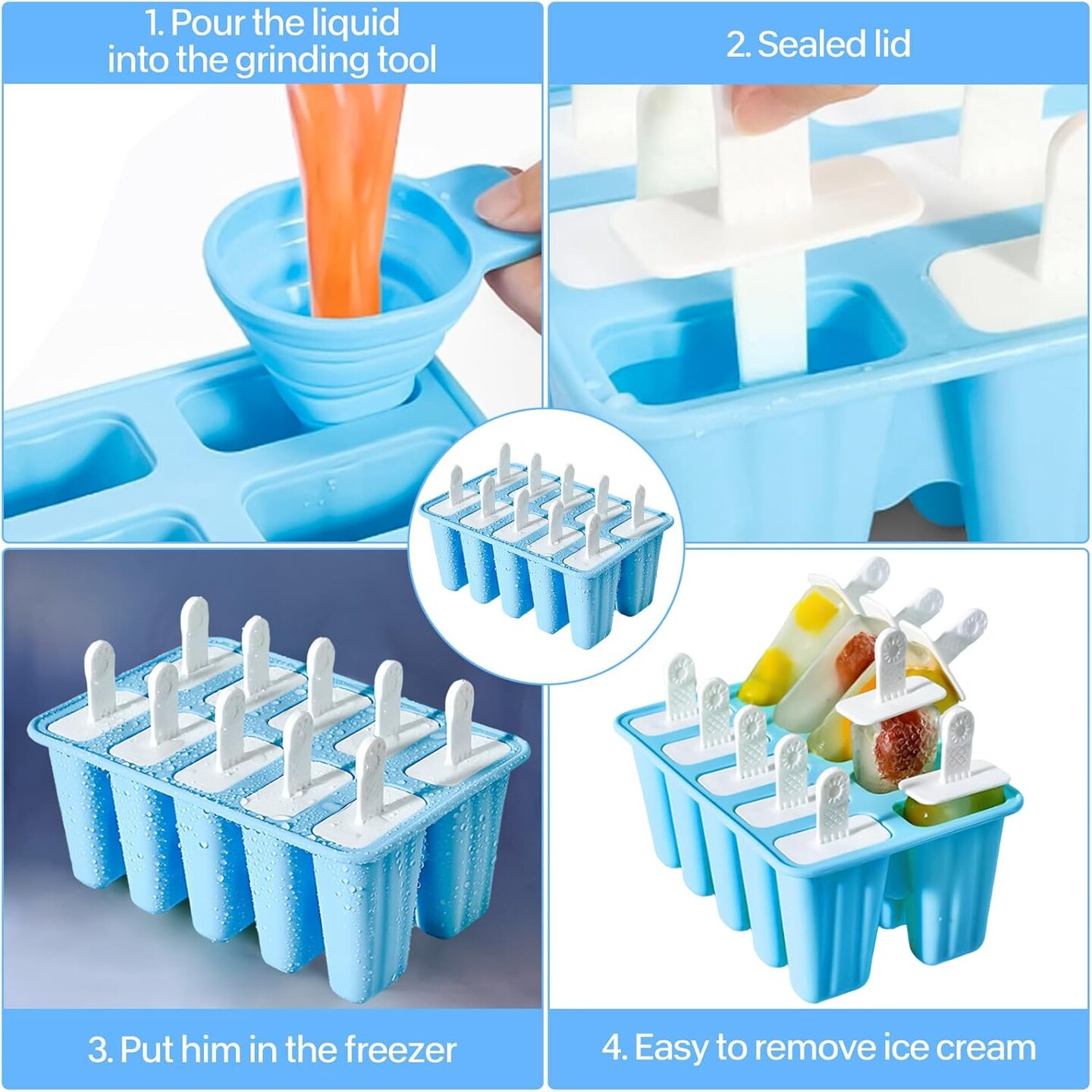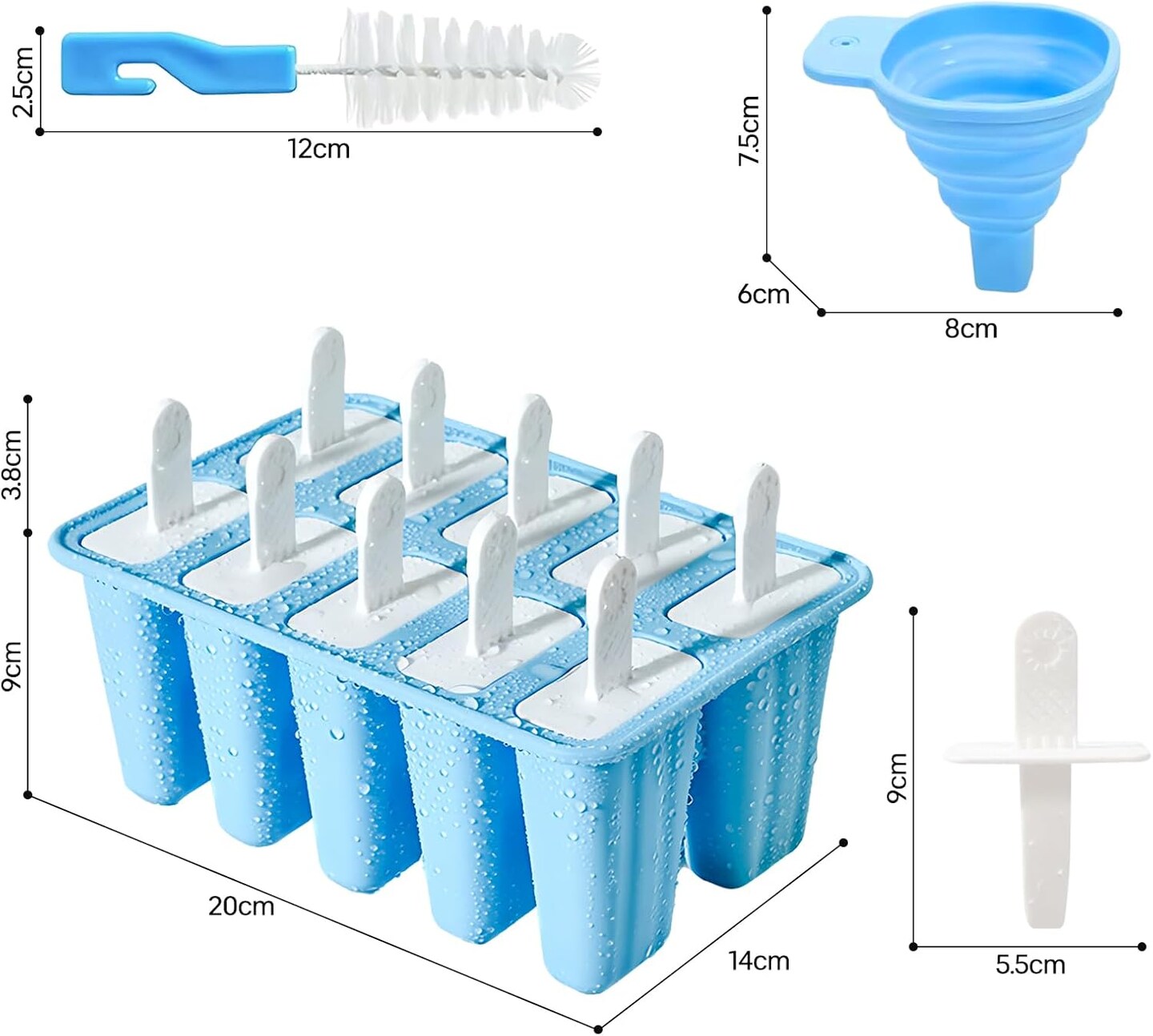 Summer Silicone Popsicle Molds – 10-Cavity BPA-Free Reusable Ice Pop Maker with Sticks, Funnel & Cleaning Brush, Easy-Release DIY Frozen Treats