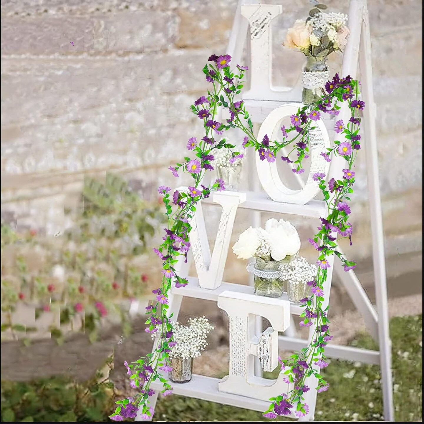 Summer Silk Daisy Flower Garland - Purple Artificial Flower Vine, Hanging Ivy Garland for Wall, Party, Wedding Arch, Floral Decor, Home Indoor/Outdoor Ceremony