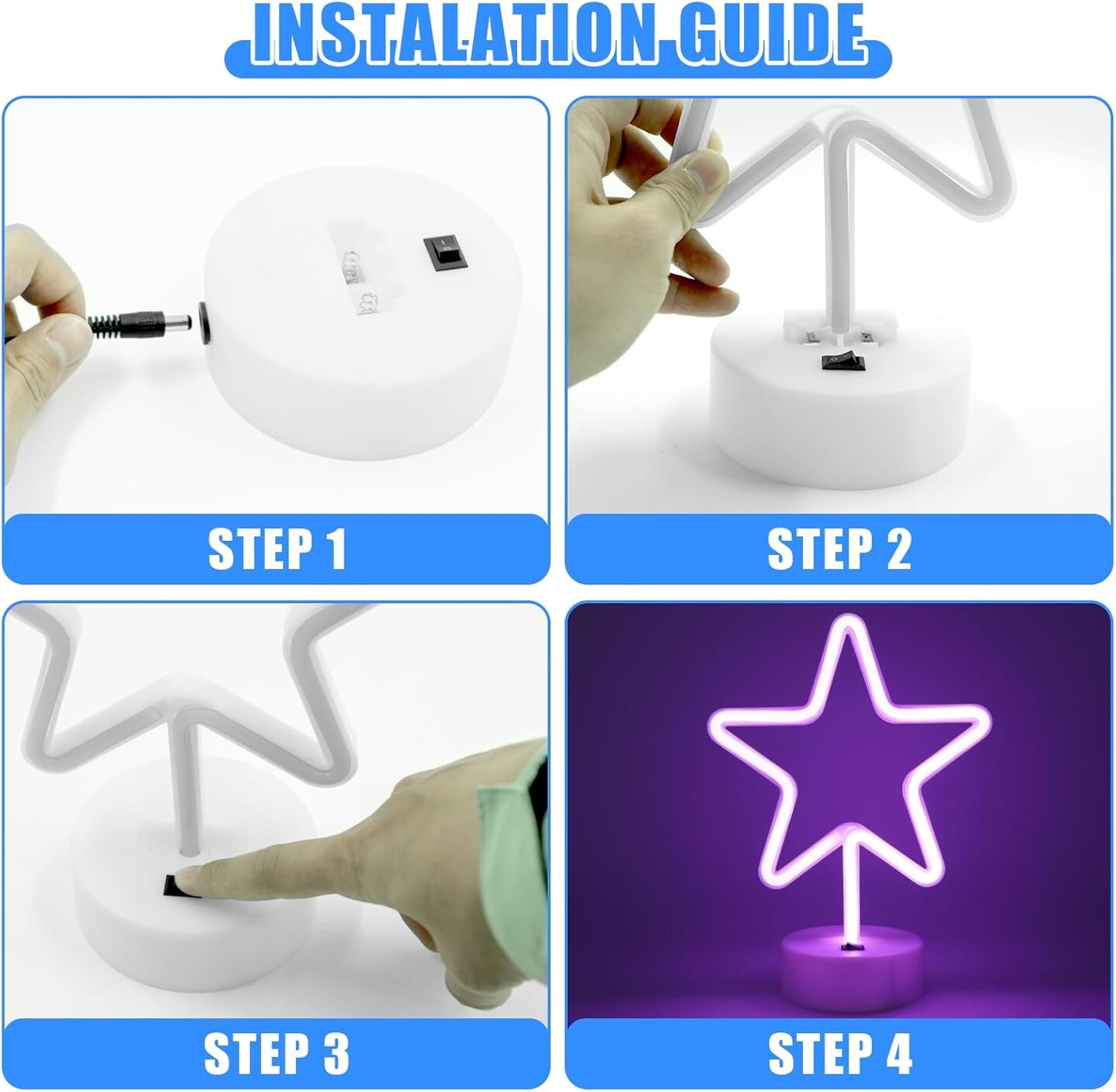 Summer Star Purple Neon Sign – 2-Pack LED Purple Star Lights for Bedroom, Room Decor, Battery Operated or USB Powered Neon Lamps for Indoor and Outdoor Use