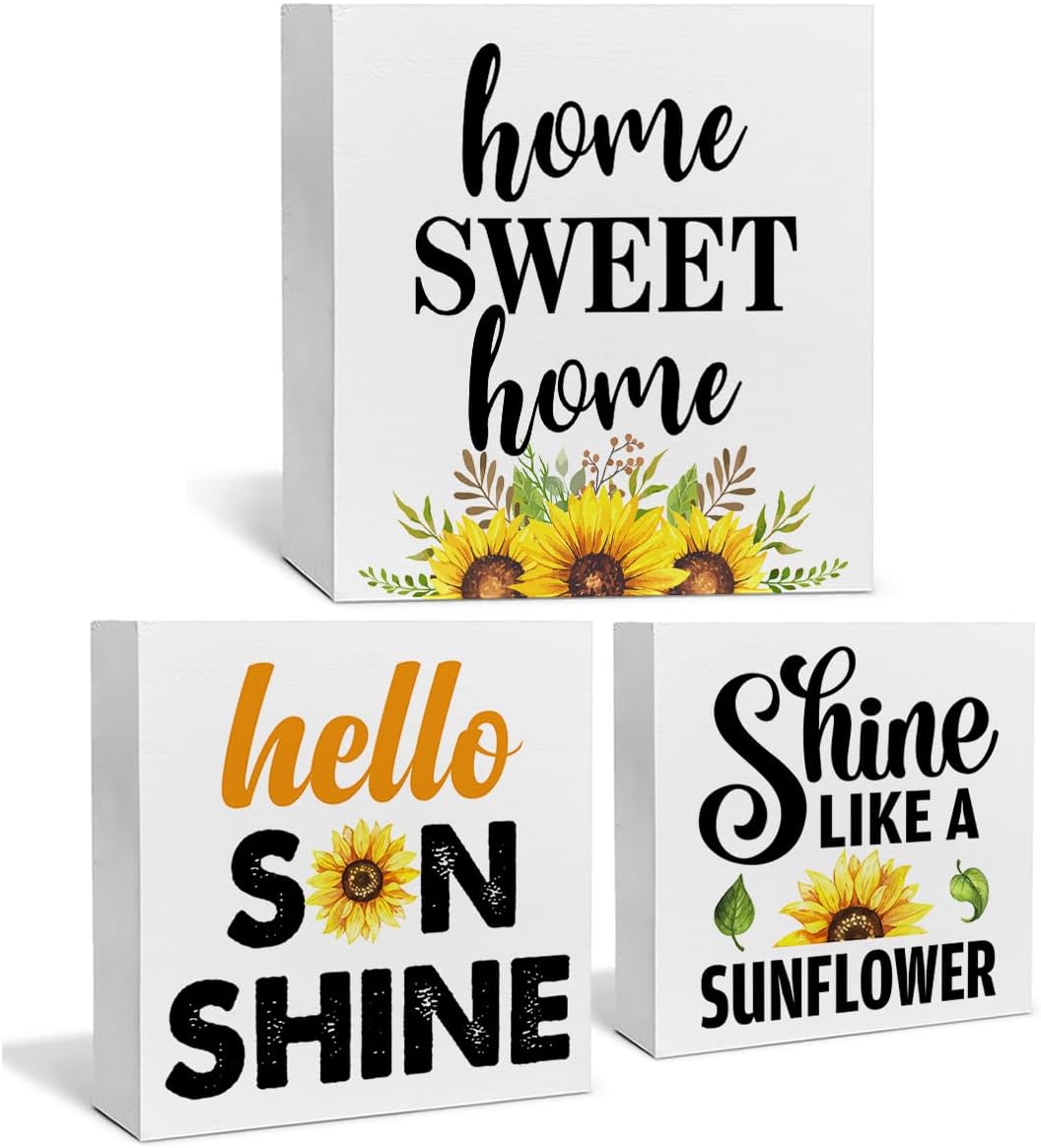 Summer Sunflower Decor for Home Farmhouse Sunflowers Tiered Tray Decor 3 Pcs Wood Decorative Signs Rustic Table Desk Shelf Home Decoration