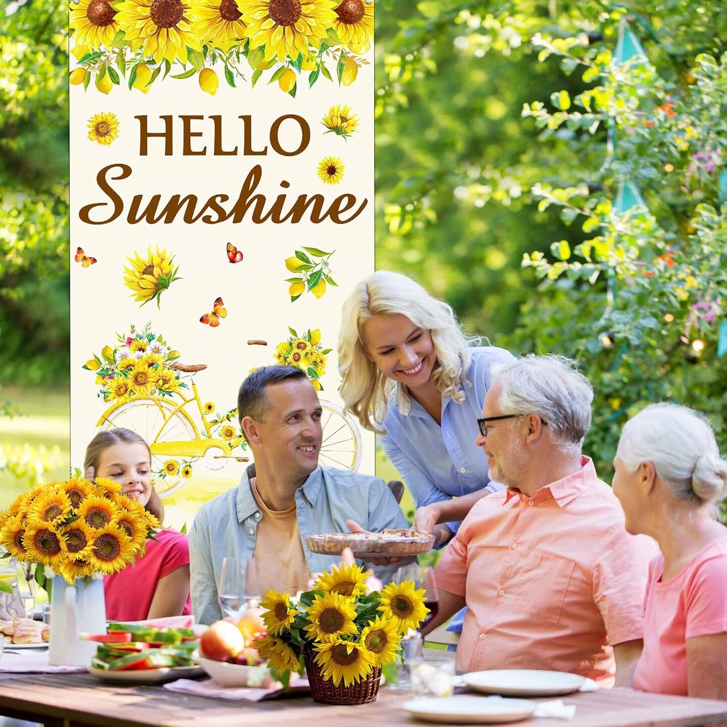 Summer Sunflower Door Decoration Banner Hello Sunshine Door Cover Banner Seasonal Welcome Door Cover for Indoor Outdoor Summer Sunflower Party Supplies