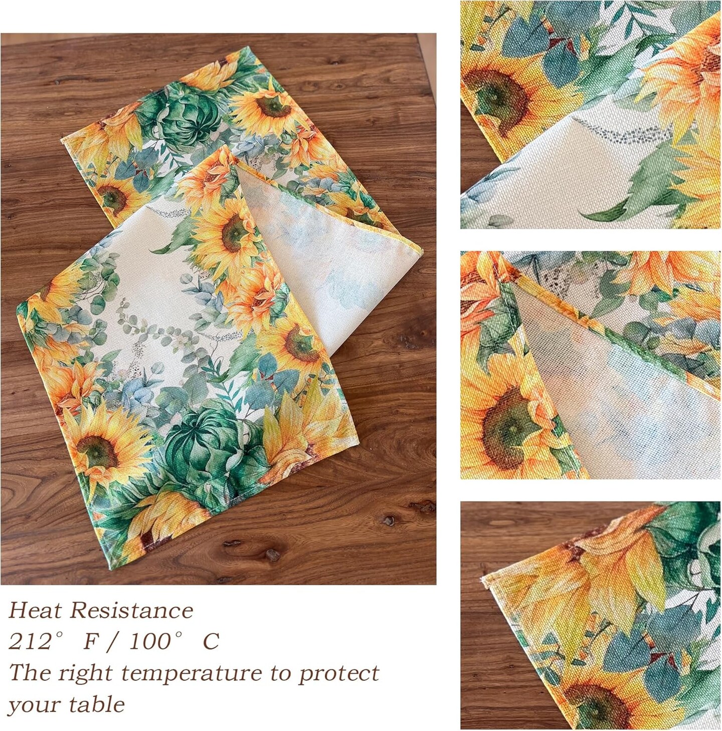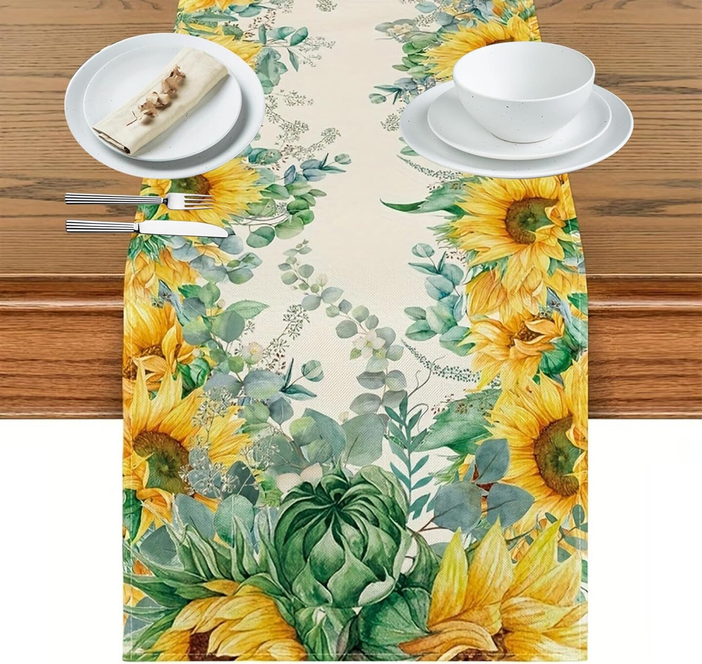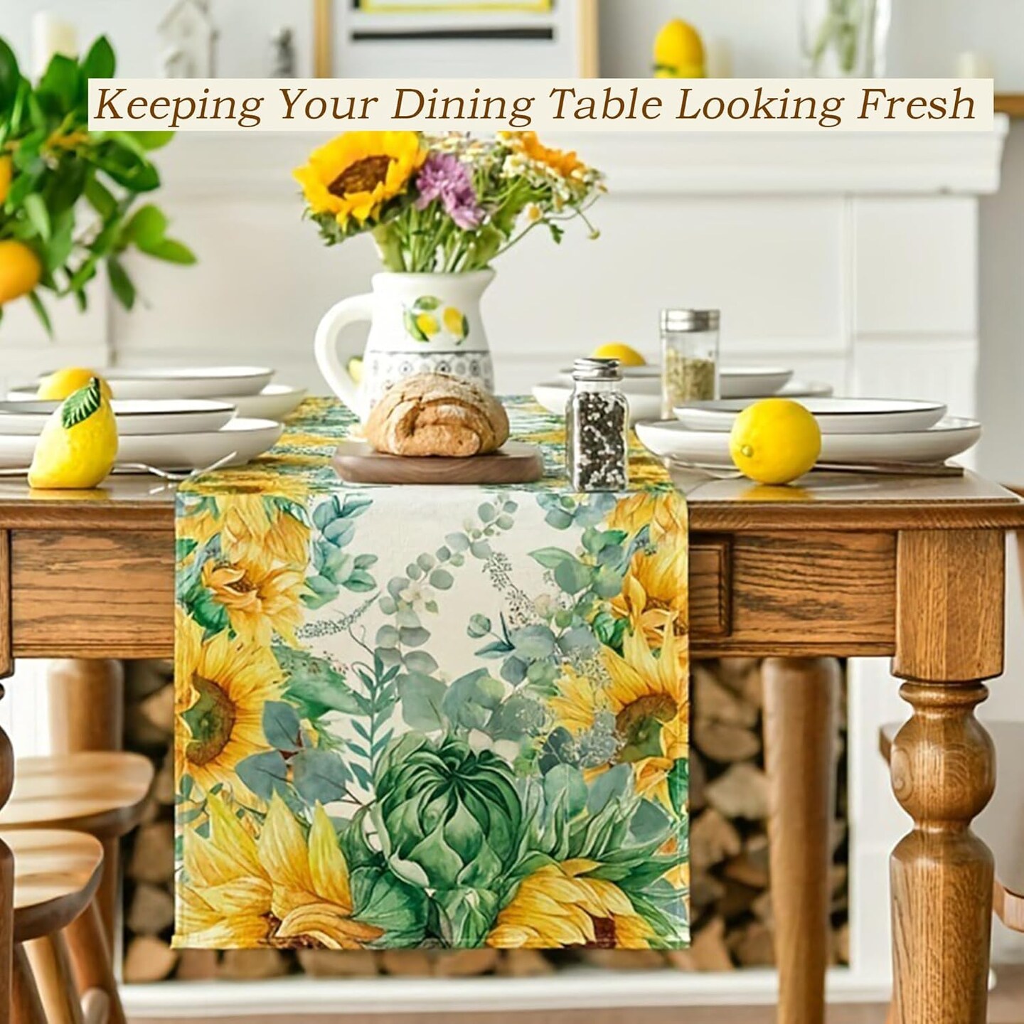 Summer Sunflower Table Runner - Eucalyptus Print Table Runners, Dining Table Decorations for Home or Party Farmhouse Spring Flower Tablecloth (Table Runner,13''×47'')