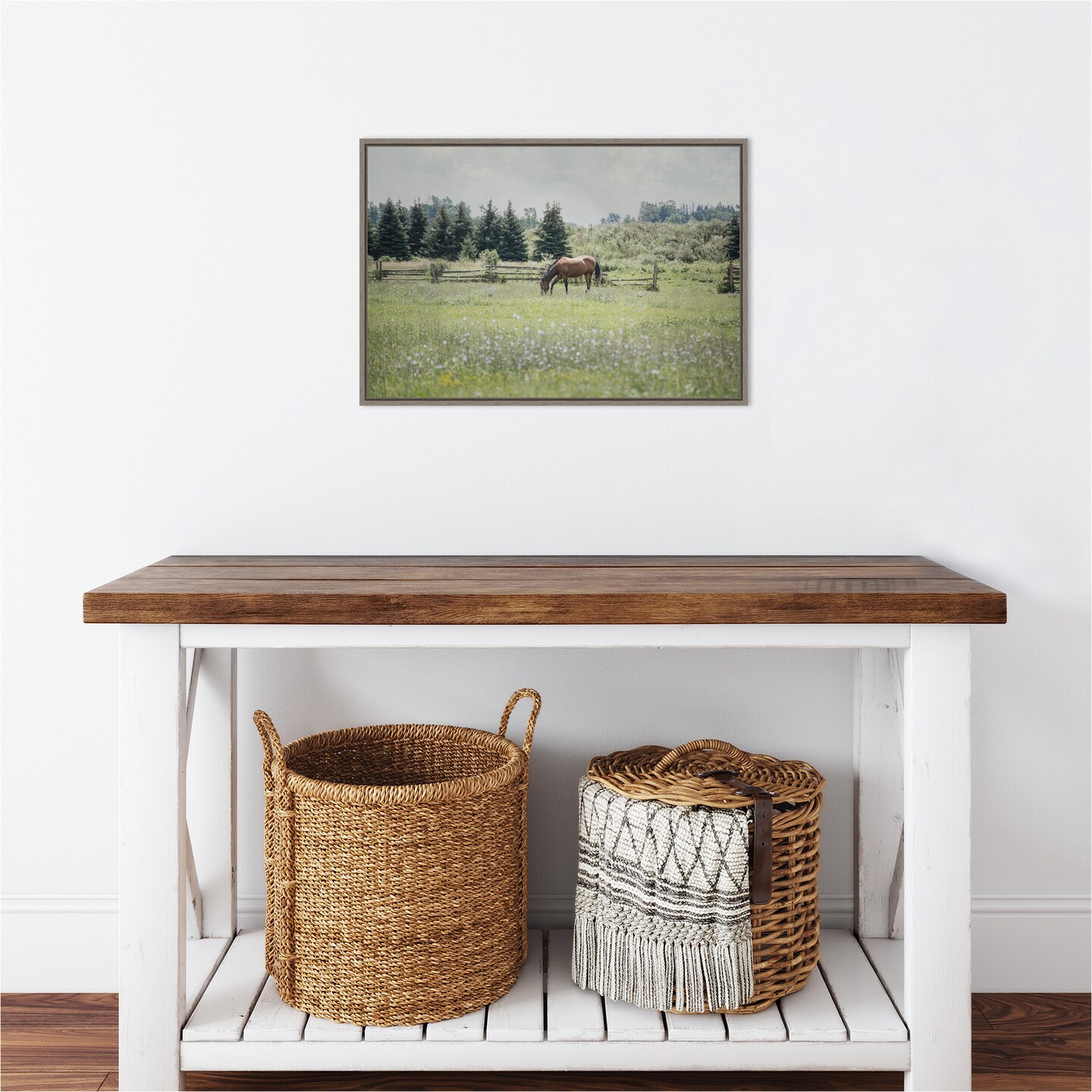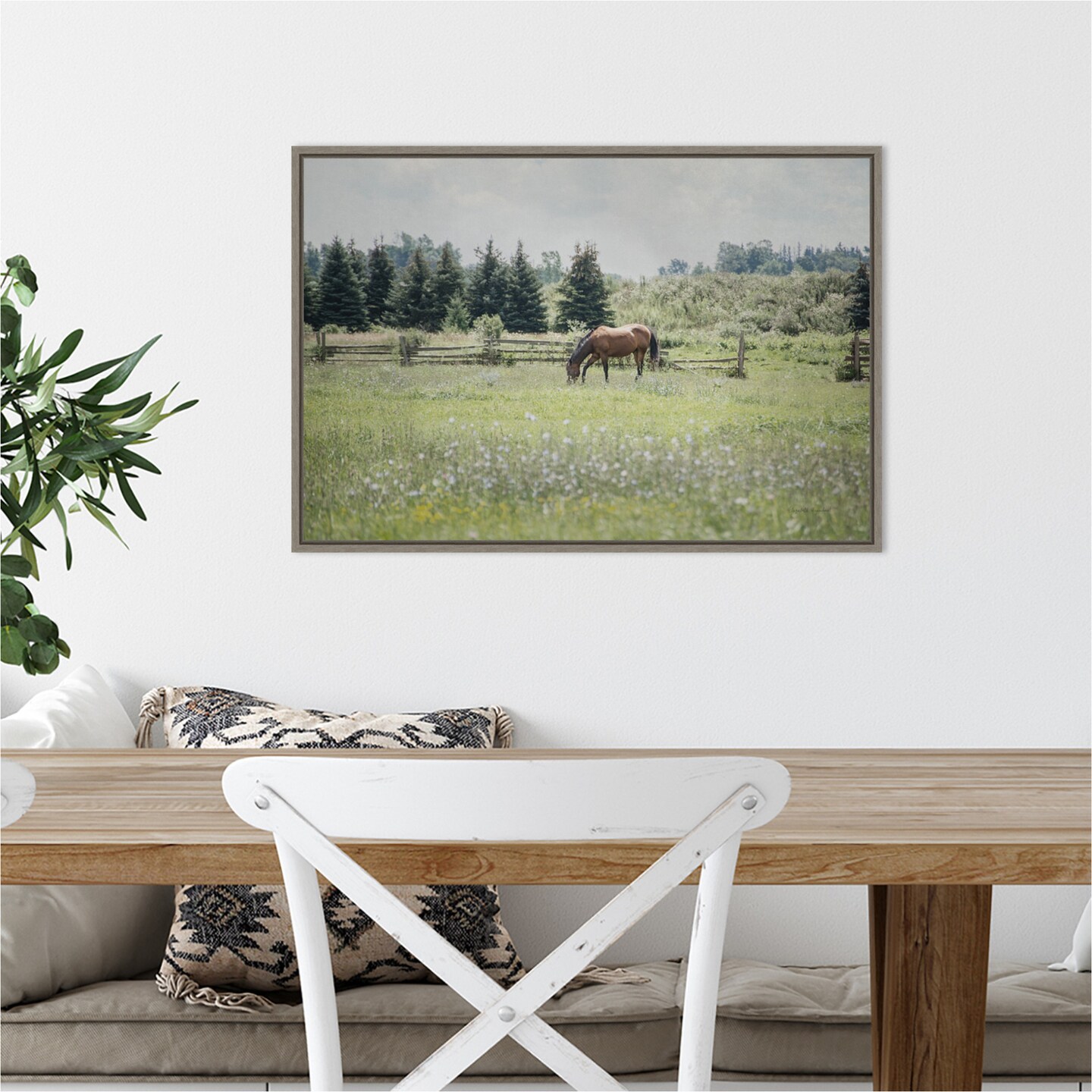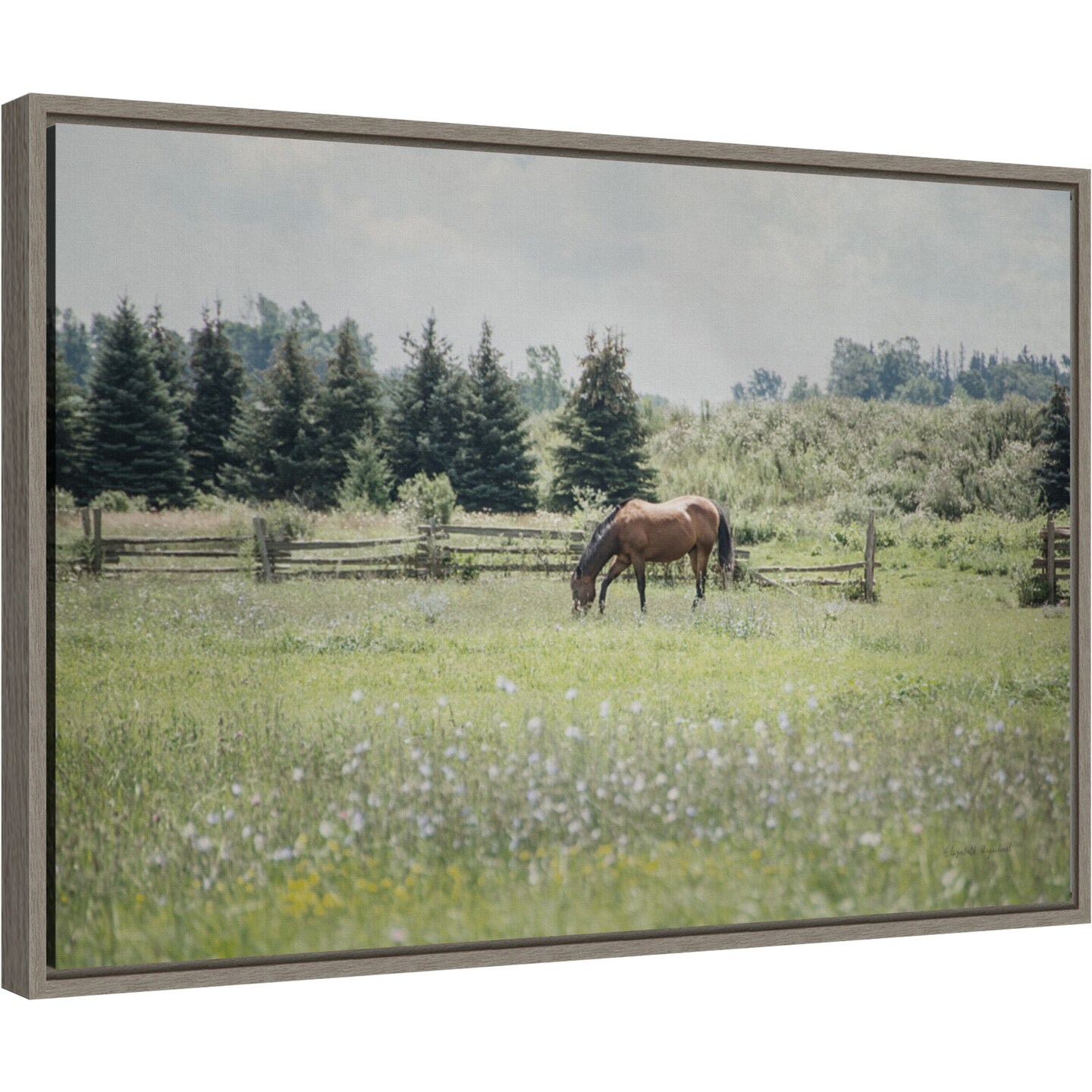 Sun Drenched II (Horse) by Elizabeth Urquhart 23-in. W x 16-in. H. Canvas Wall Art Print Framed in Grey