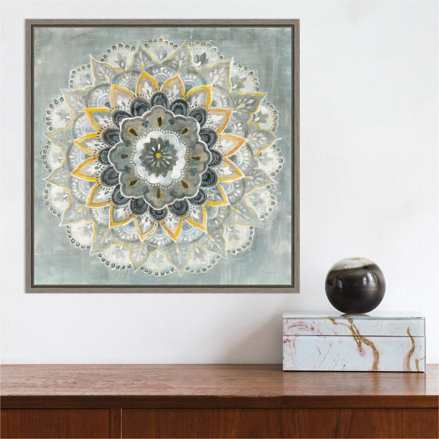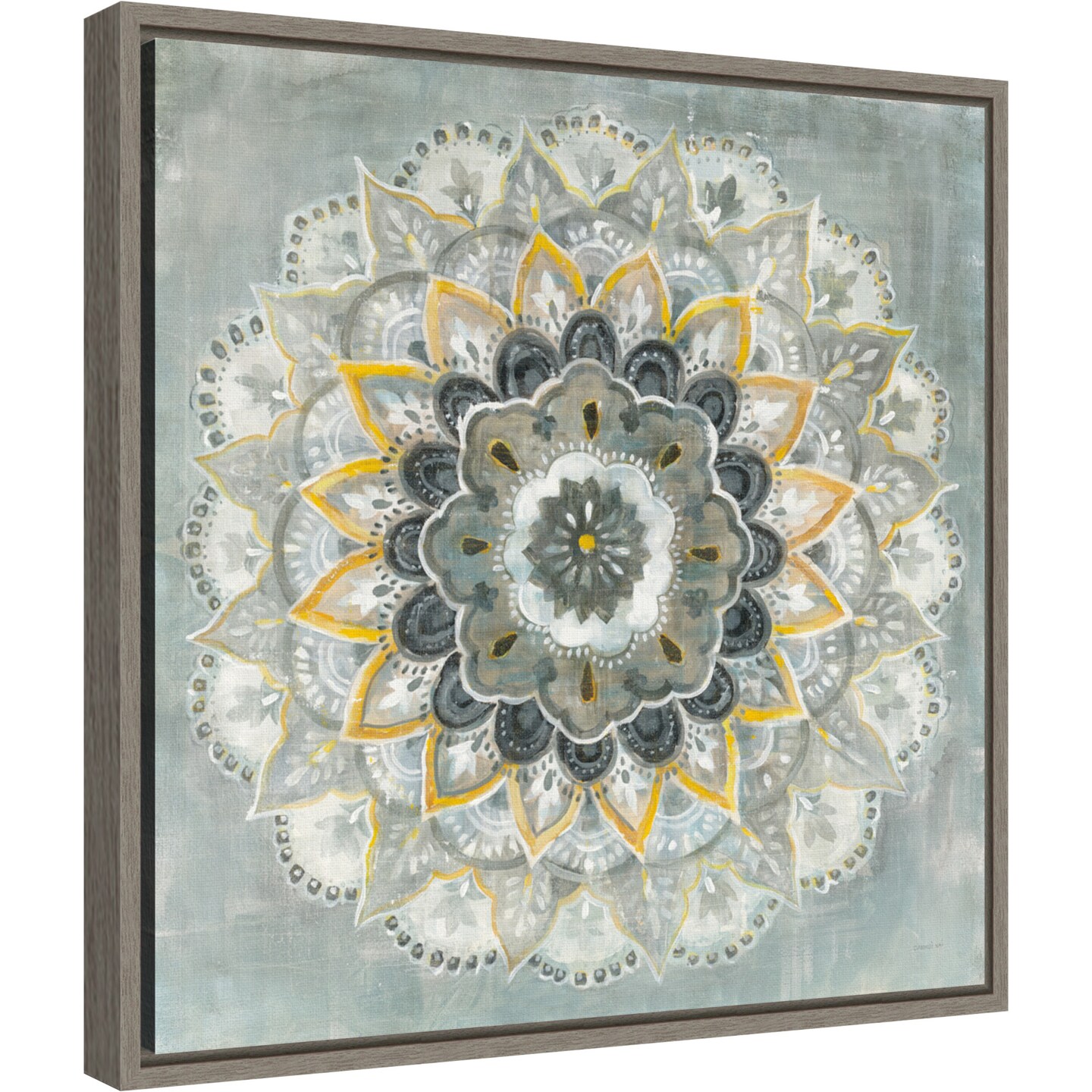 Sunburst (Mandala) by Danhui Nai 16-in. W x 16-in. H. Canvas Wall Art Print Framed in Grey