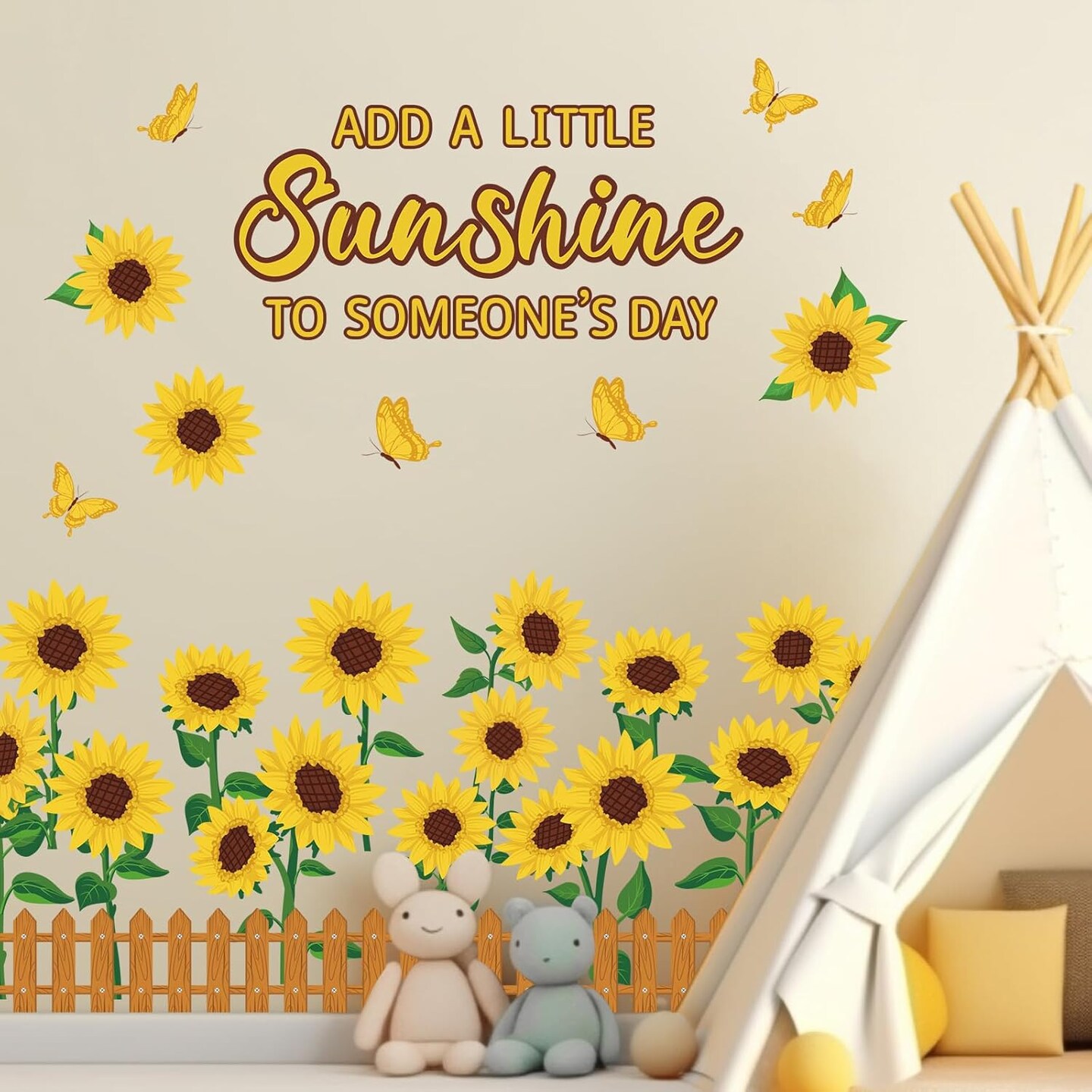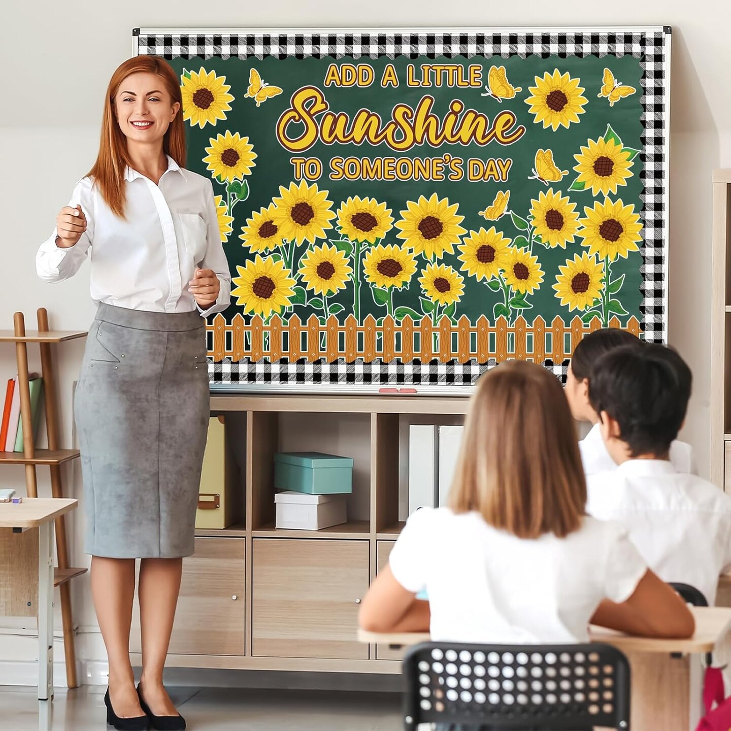 Sunflower Bulletin Board Decoration Spring Cutout Set with Butterflies Fences