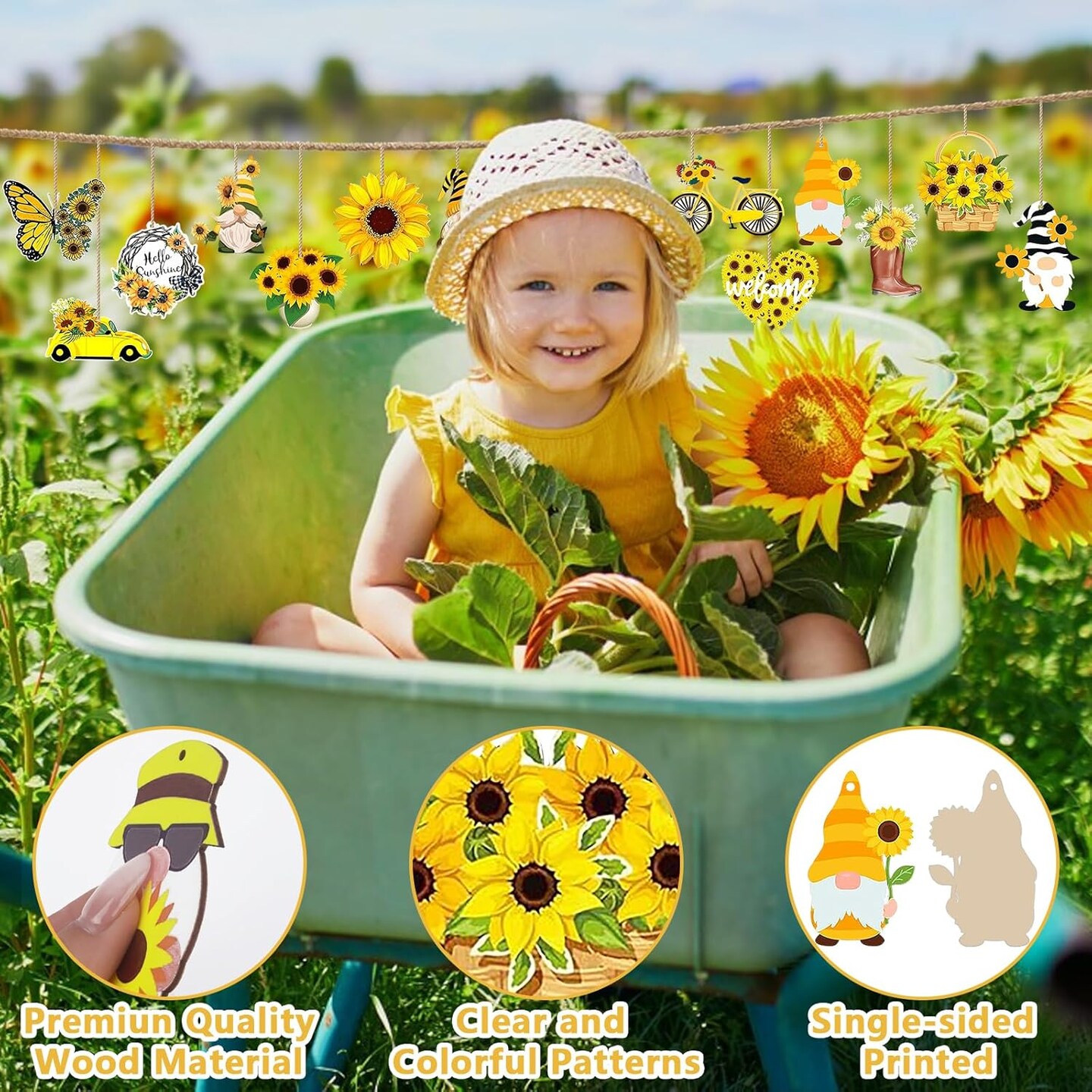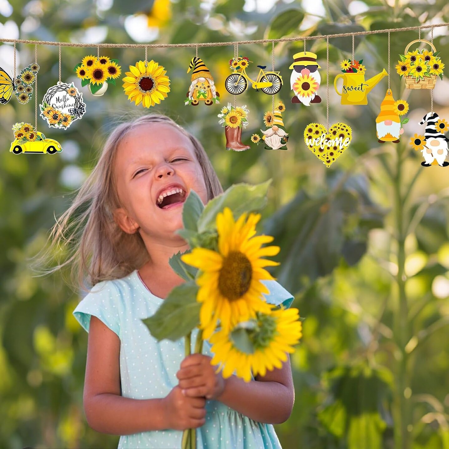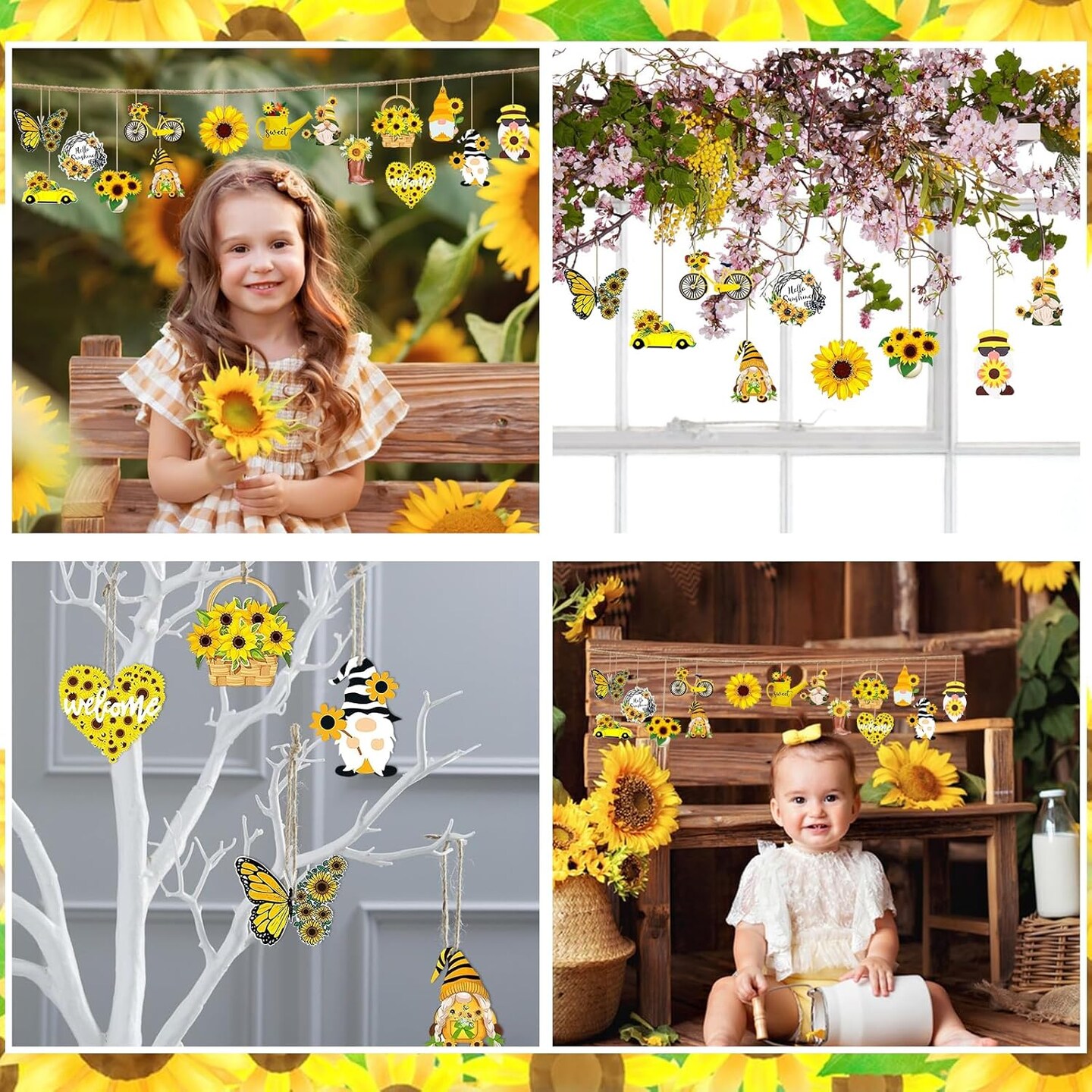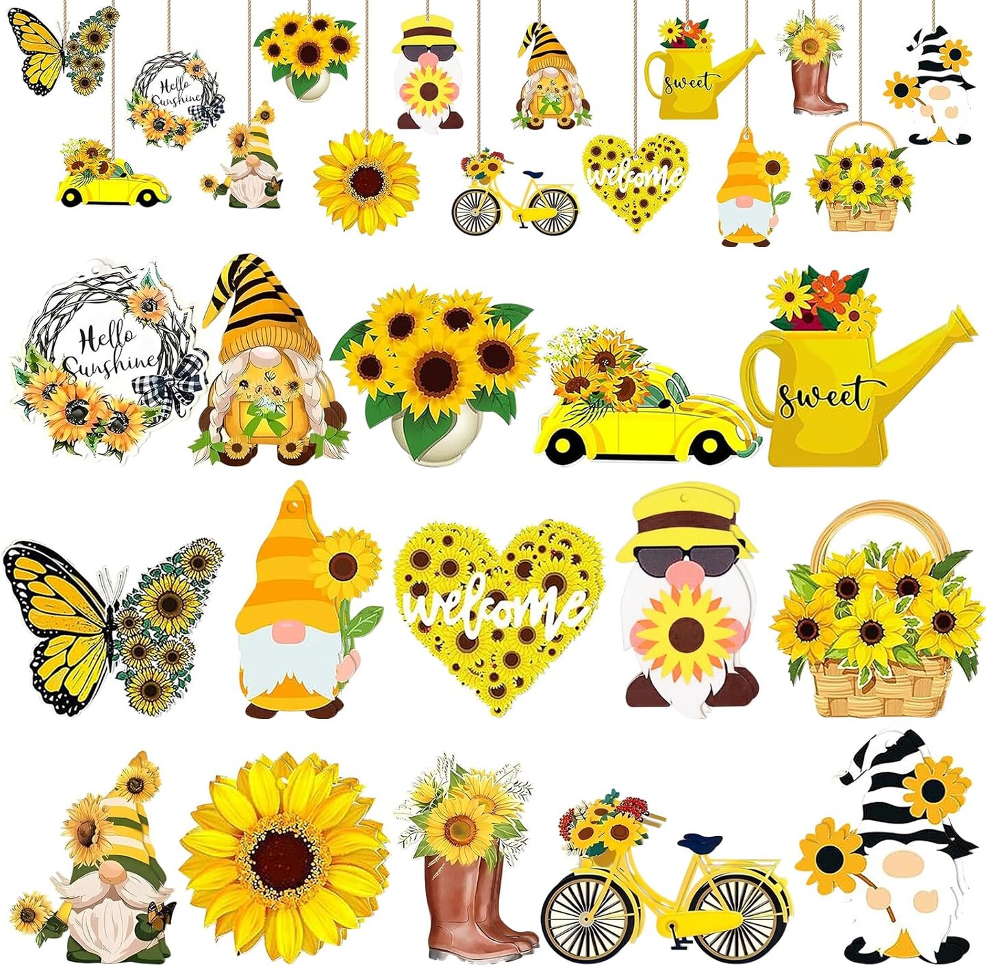 Sunflower Gnome Ornaments for Tree Summer Sunflower Wood Hanging Ornaments Gnome Christmas Ornaments Party Supplies