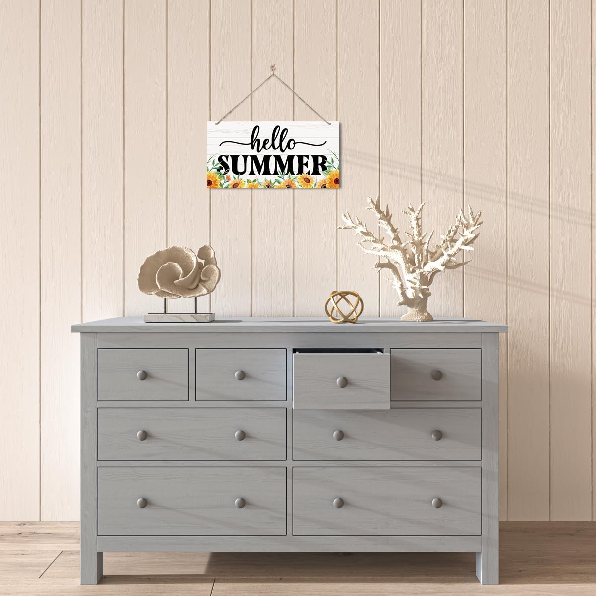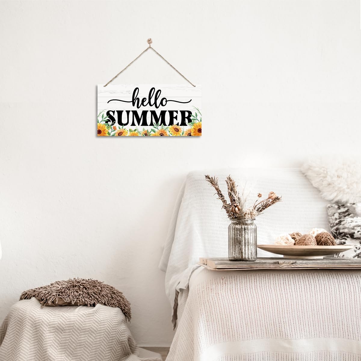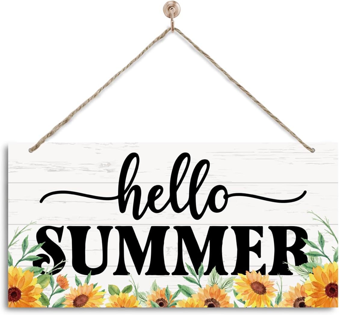 Sunflower Summer Decor, Hello Summer Hanging Sign, Decorative Wall Plaque, Rustic Door Hanger, Decorative Wooden Wall Sign, Summer Themed Decor Sign, Farmhouse Decor for Home Front Door