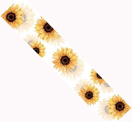 Sunflower Table Runner – Linen Fall Rustic Kitchen Dining Home Decor – 13x72 Inch