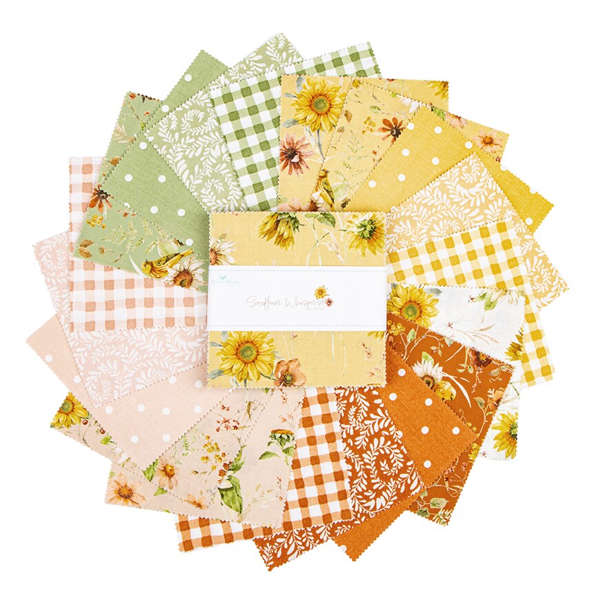 Sunflower Whispers 5" Square Pack (Charm Pack / 5" Stacker) by for Riley Blake (5-16670-42)