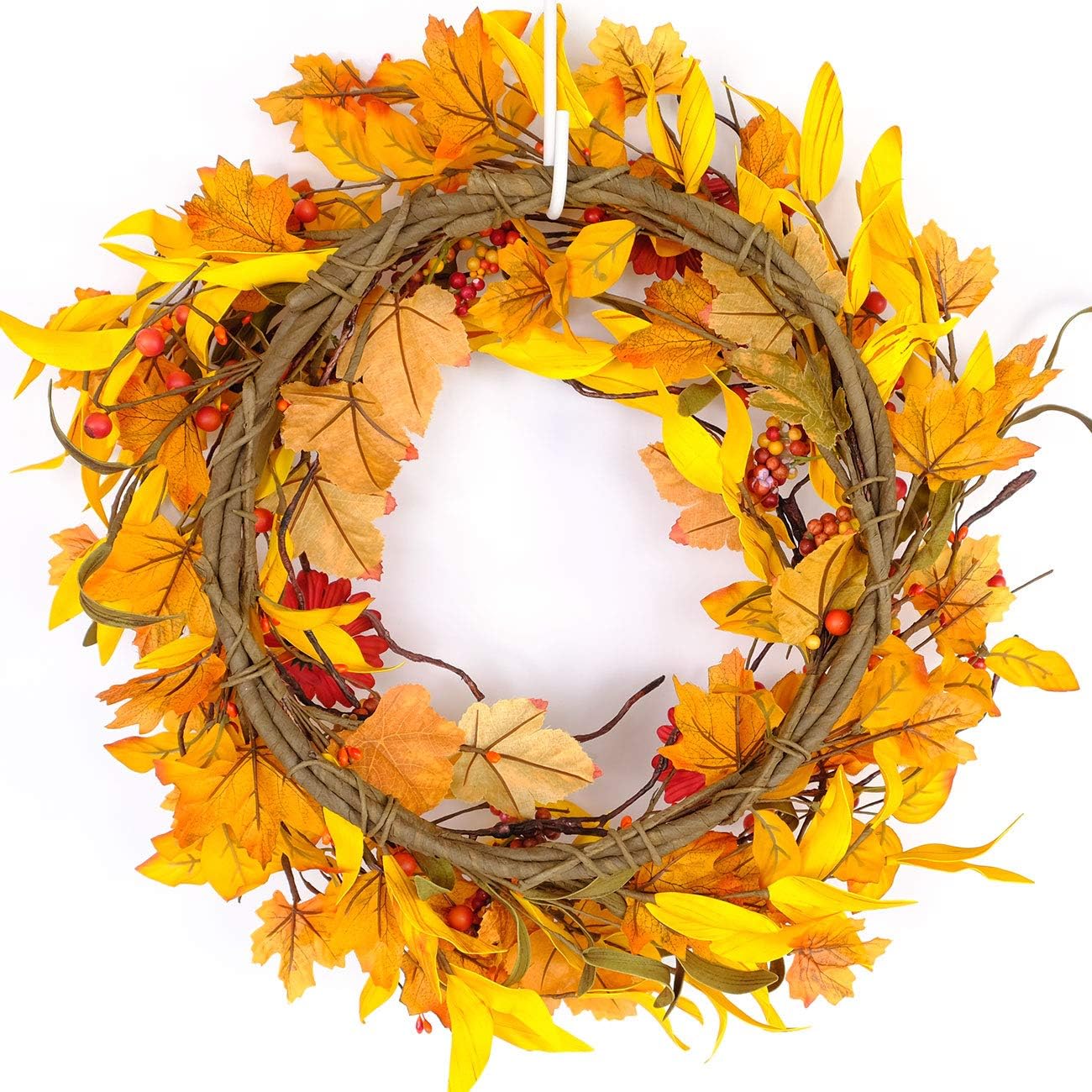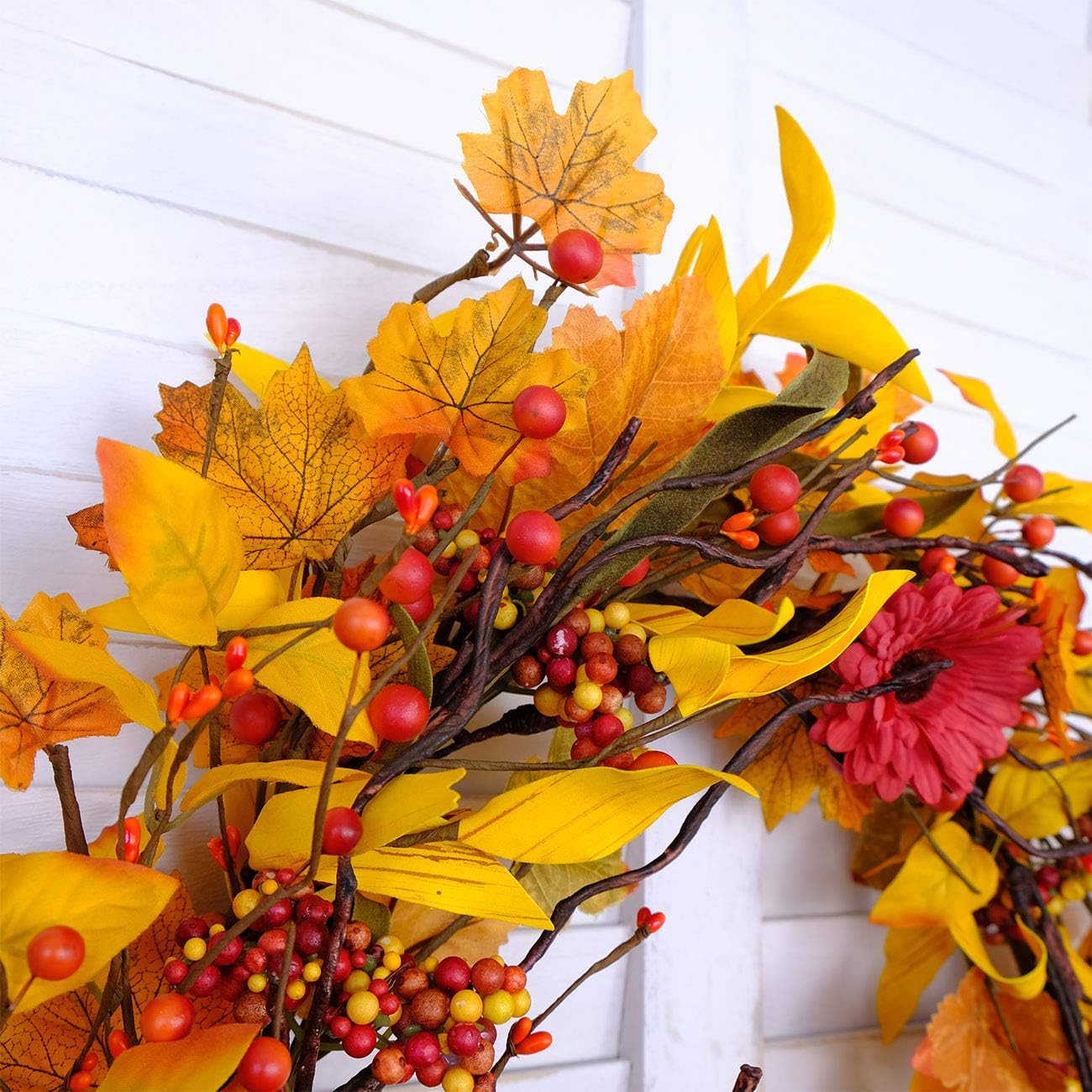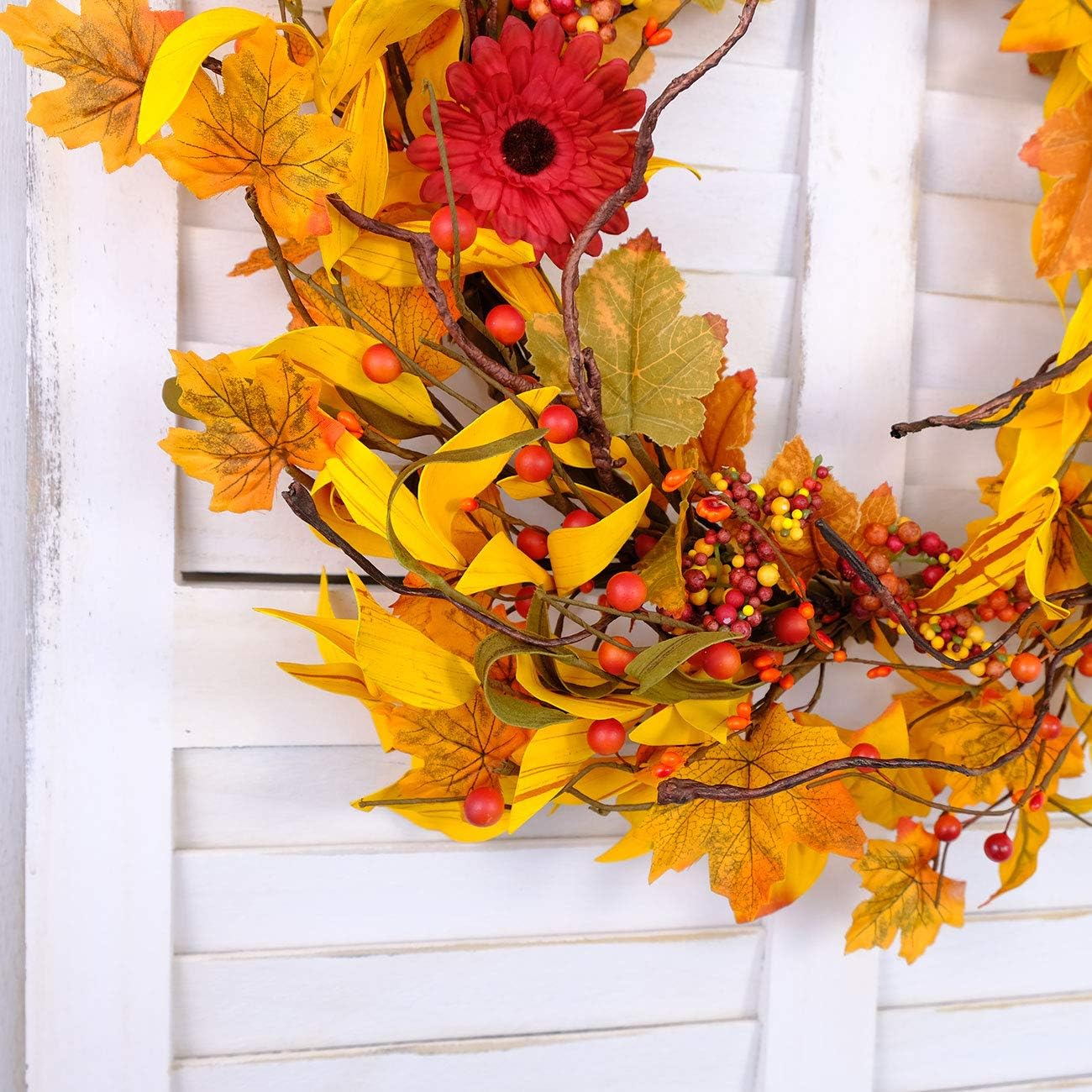 Sunflower Wreath Berries Leaves Seeds Pip Harvest Wreath for Front Door for Wedding Home Decor