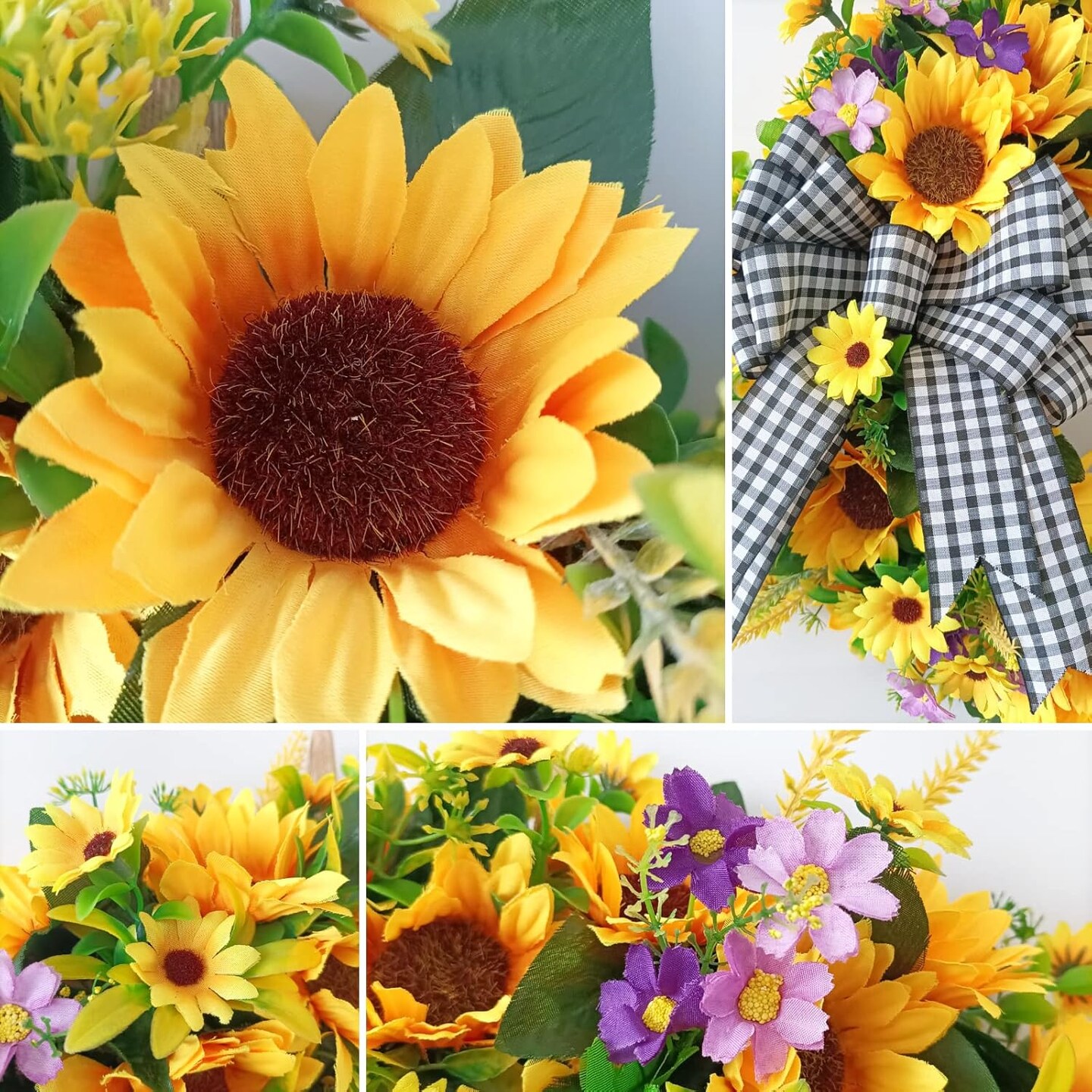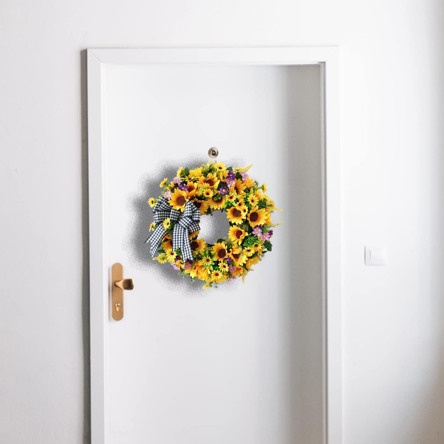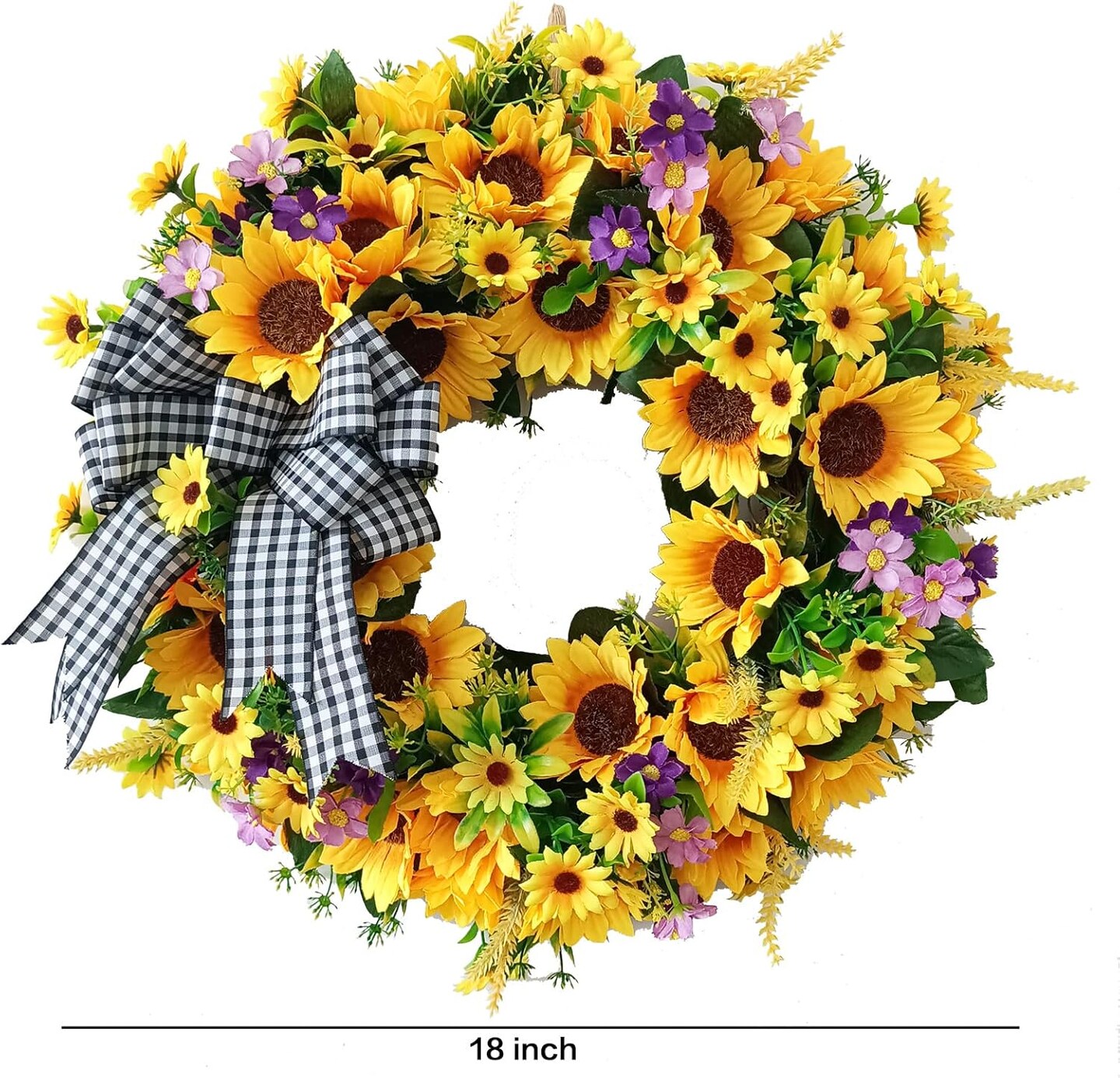Sunflower Wreaths for Front Door,18 inch Yellow Spring and Summer Door Wreath with Bow, Handmade Silk Sunflower Decor for Home Party Festival Wedding Decor