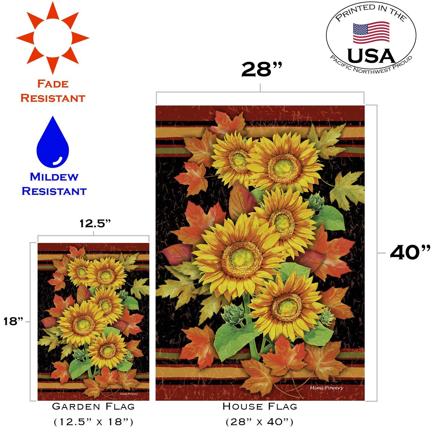 Sunflowers and Leaves Decorative Fall Flag