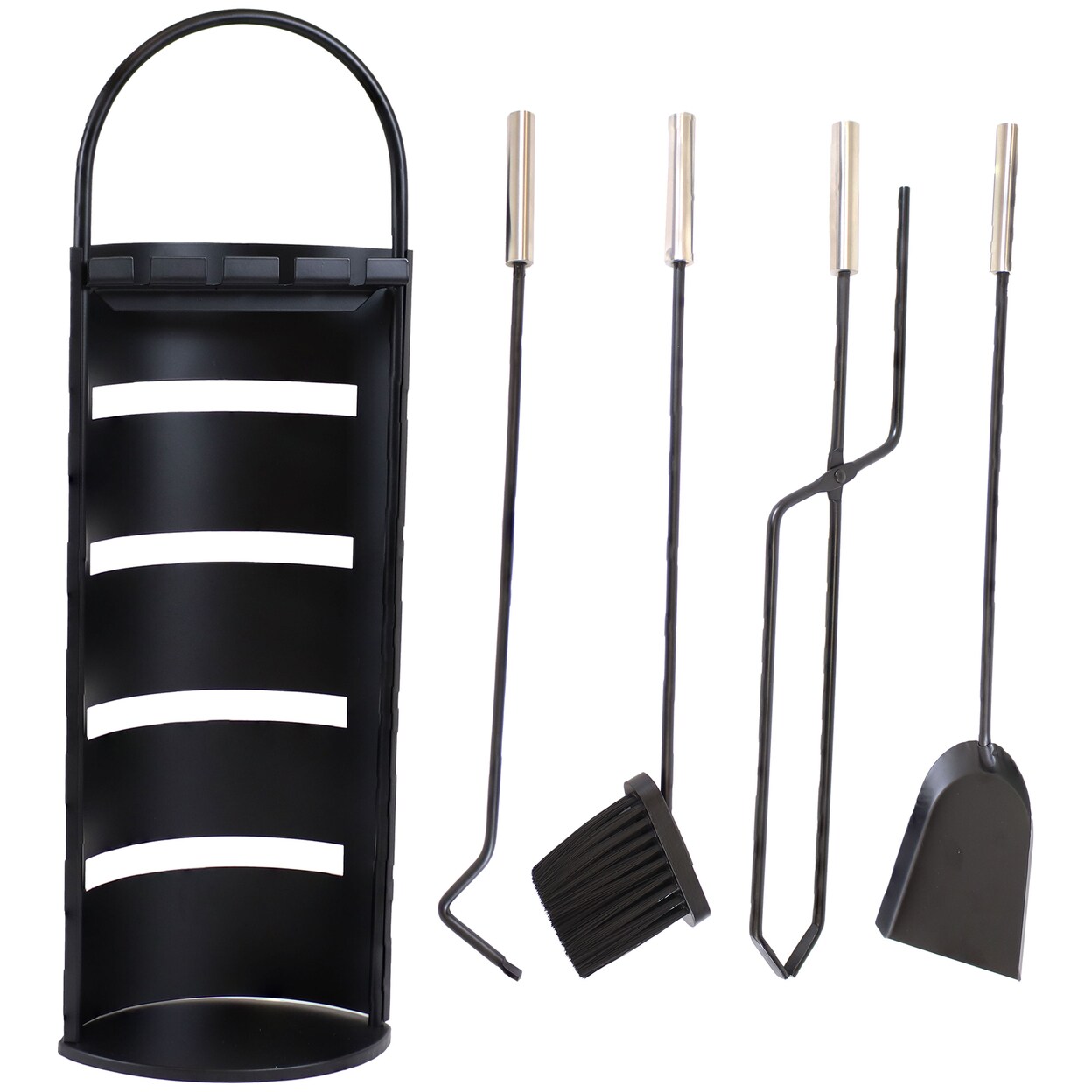 Sunnydaze 4-Piece Fireplace Tool Set With Slotted Shroud Holder