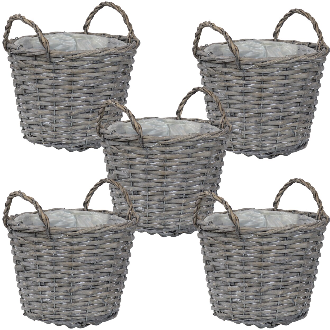 Sunnydaze 8 In Rattan Wicker Basket Planters With Handles/Lining - Set Of 5