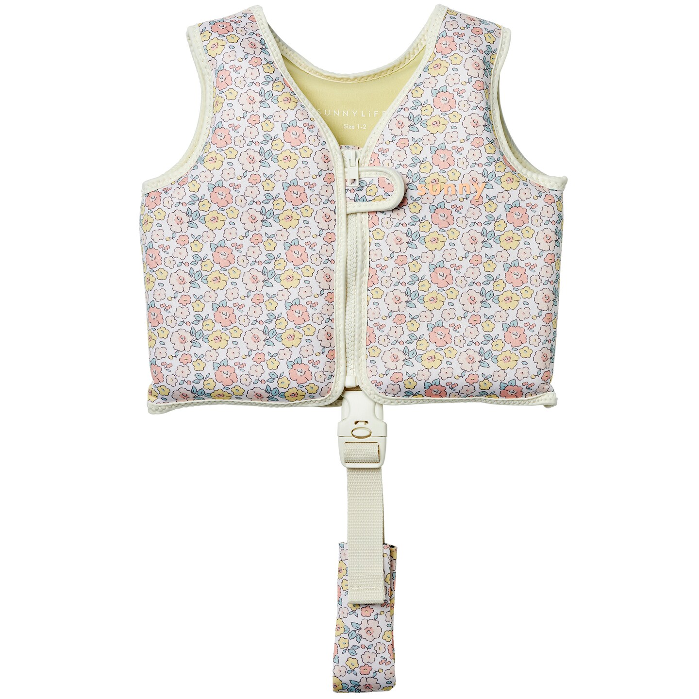 Sunnylife: Kids Float Vest 1-2 - Into the Garden - Ditsy Floral, Children Up To 33lbs, Pool & Water Jacket, Zip Front, Safety Strap, Natural Rubber