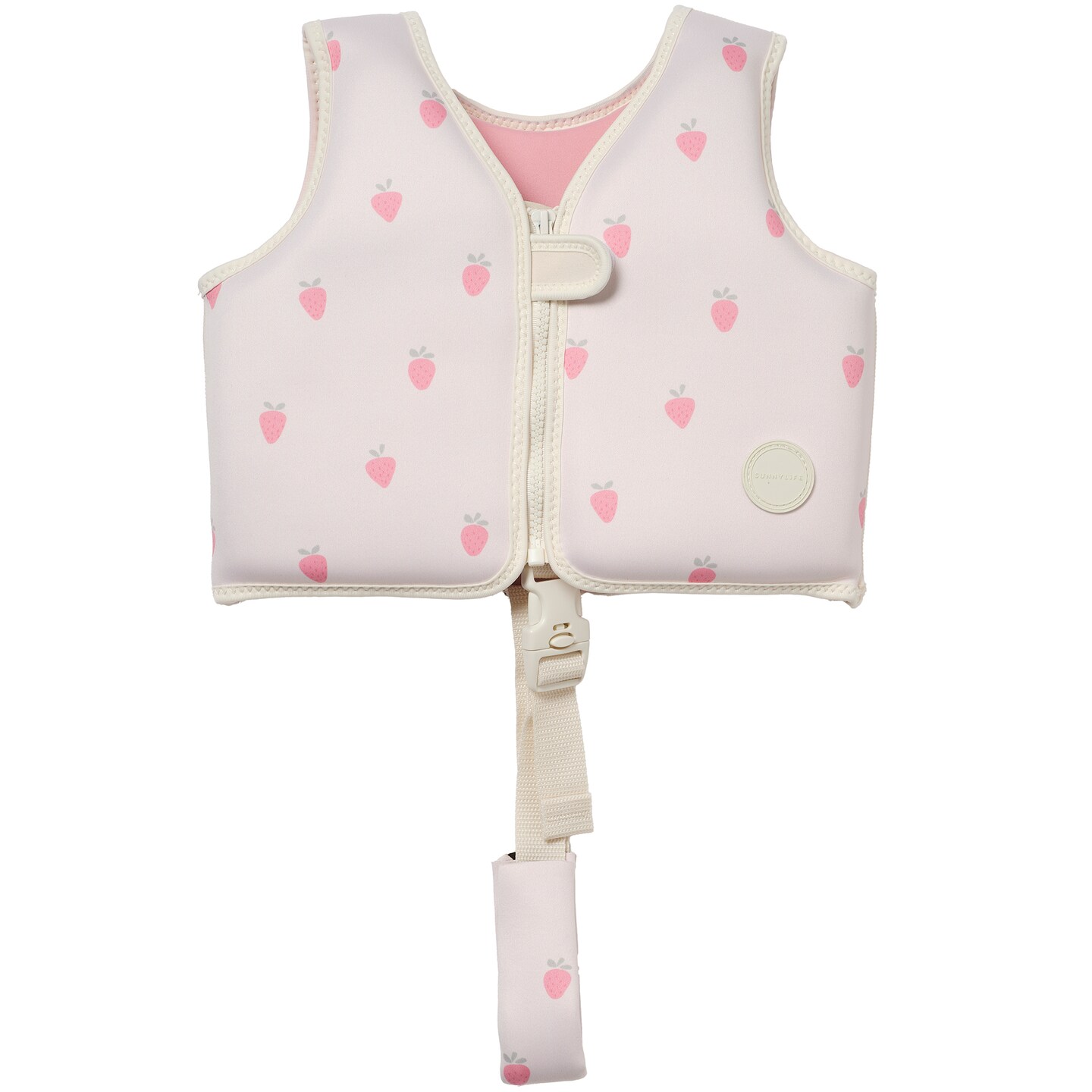 Sunnylife: Kids Swim Vest: Size 2-3 - Strawberry Sunshine - Children Up To 42lbs, Pool & Water Float Jacket, Zip Front, Safety Strap, Natural Rubber