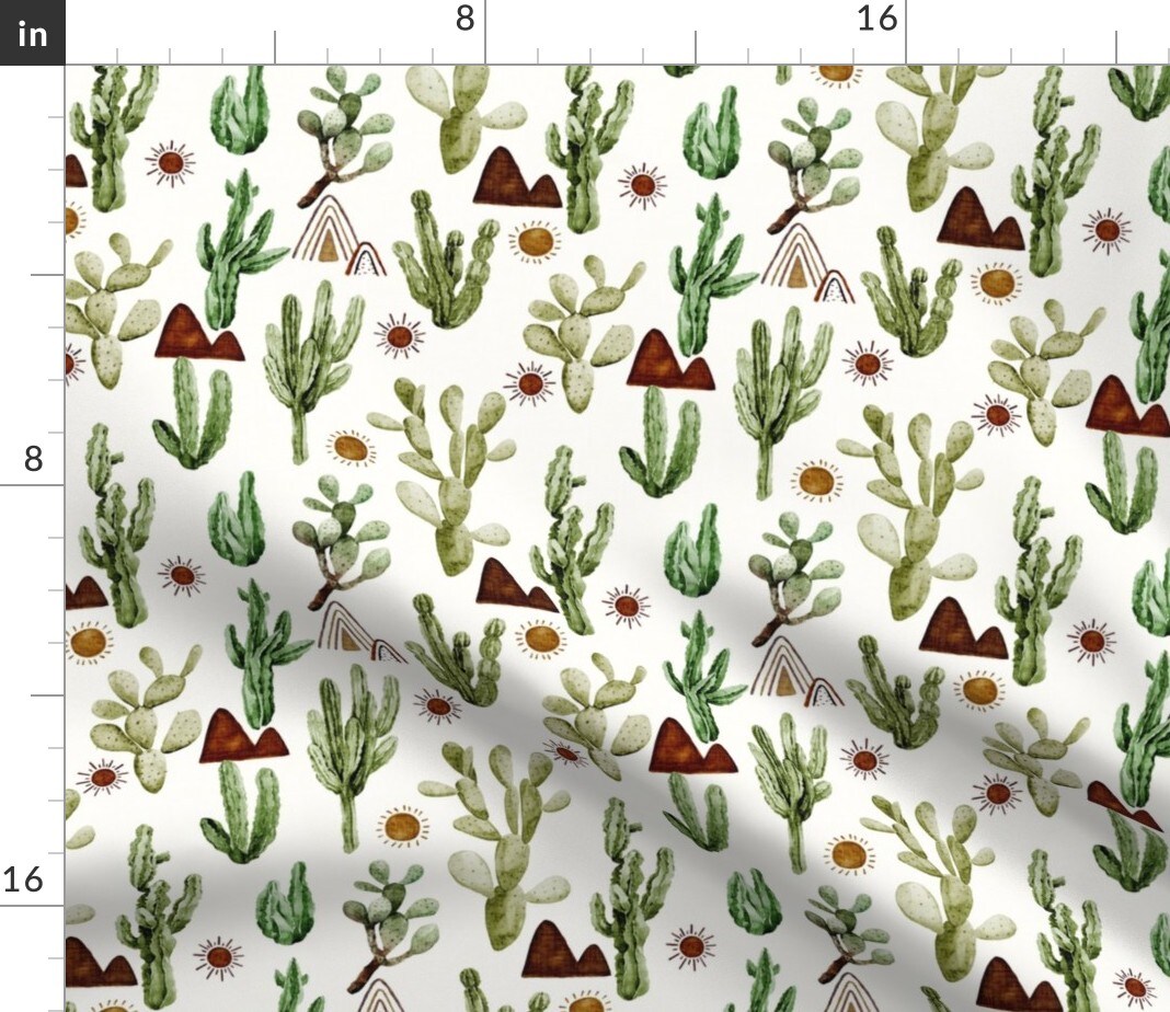 Sunrise Cactus Sun Summer Botanical Desert Mountain Mountains Custom Printed Fabric by Spoonflower Various Fabrics by the Yard or Fat Quarter