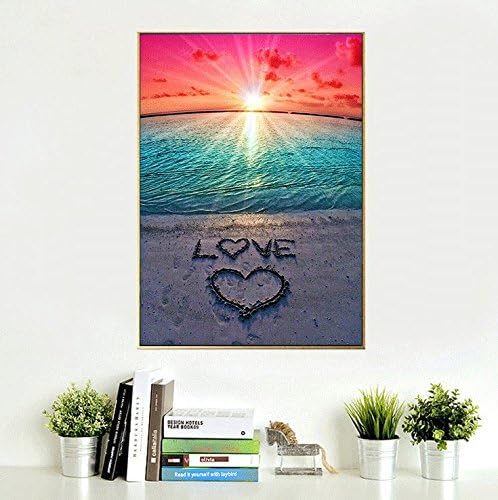 Sunset Beach Diamond Painting Kit for Adults – 5D Full Drill DIY Love Diamond Art by Number, Beginner-Friendly Crystal Rhinestone Craft, 16×12 Inch