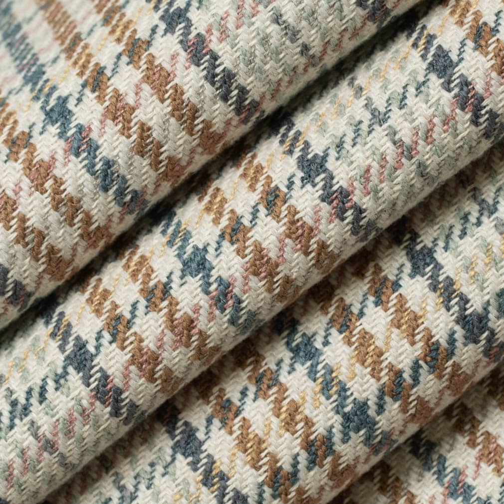 Sunset - Blue Check & Houndstooth,Plaid Upholstery Fabric 54 Inches"