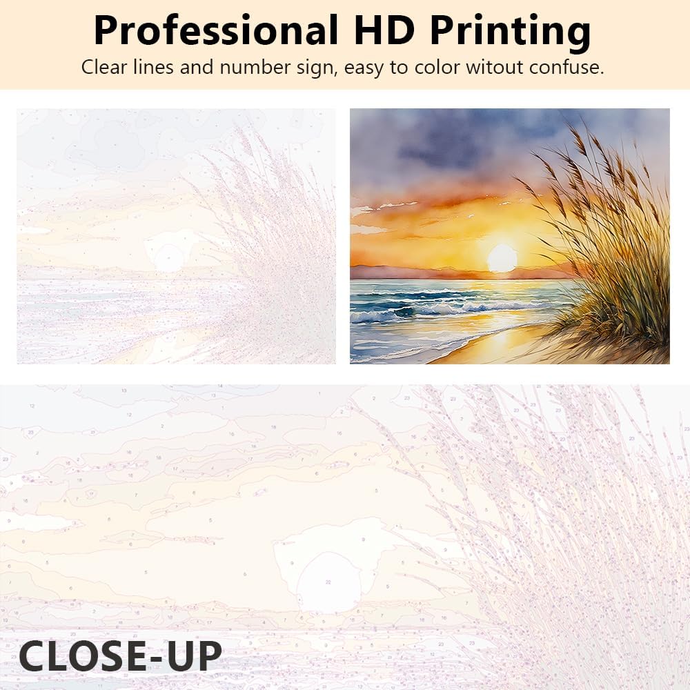 Sunset Paint by Numbers for Adults Sand and Beautiful Sunset Sky DIY Adult Paint by Number Kits on Canvas Beach and Grass Painting by Numbers Oil Painting Art Crafts