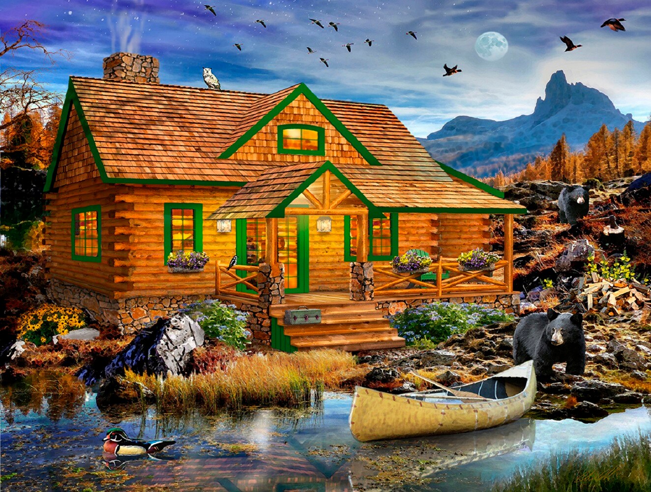 Sunsout Blue Mountain Cabin 500 pc Jigsaw Puzzle 46036