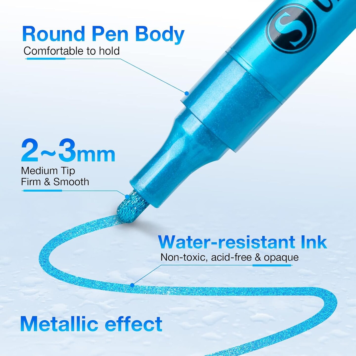 Super Golden Metallic Paint Markers, 12 Colors Sparkle Metallic Glitter Markers, Acrylic Paint Pens for Rock Painting, Glass, Wood, Fabric, Black Paper, Cards, Scrapbook, DIY Art Crafts (2-3mm)