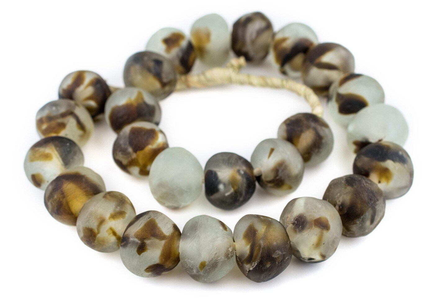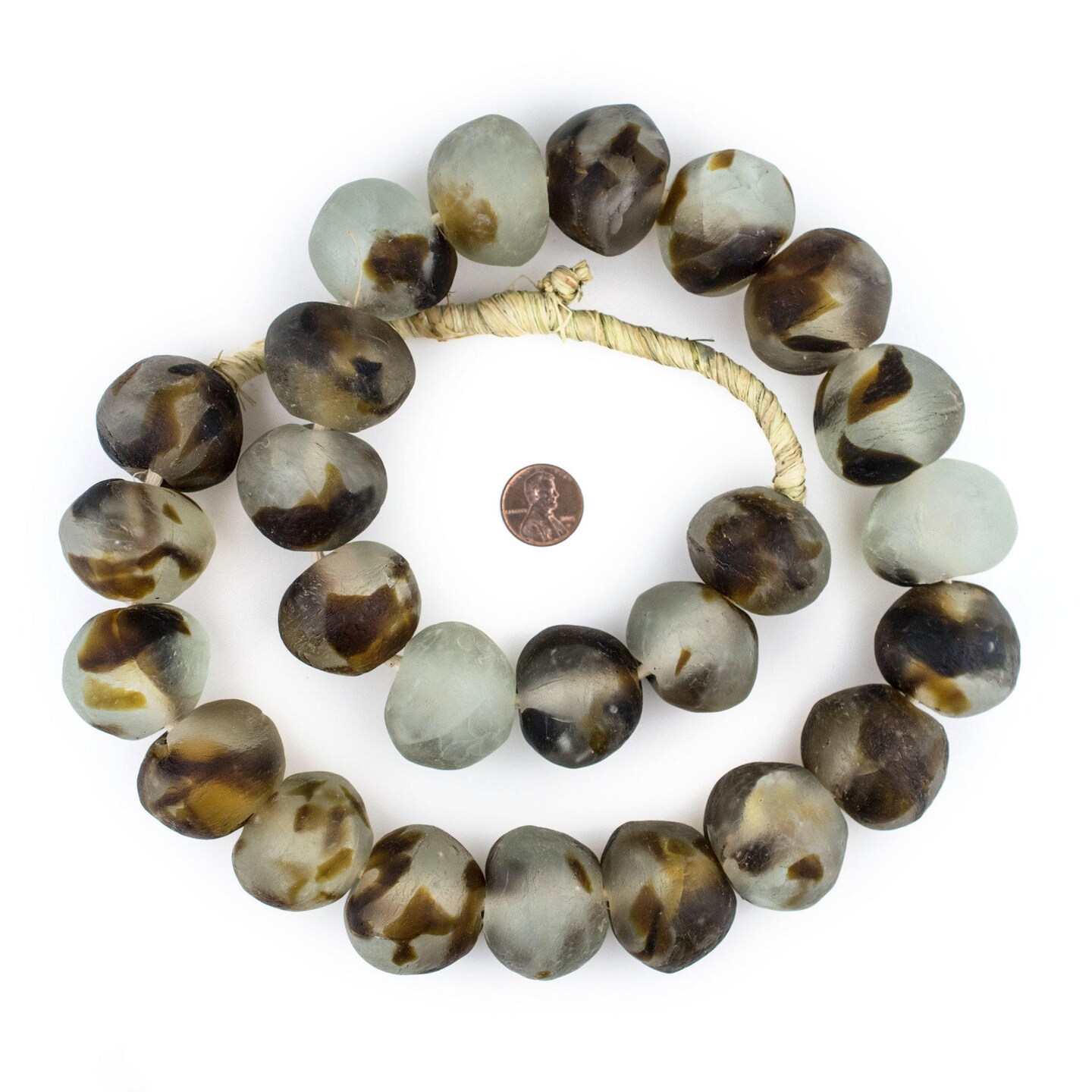 Super Jumbo Recycled Glass Beads - Beaded Wall Hangings - Extra Large African Sea Glass Beads 32-35mm - The Bead Chest (Brown Swirl)
