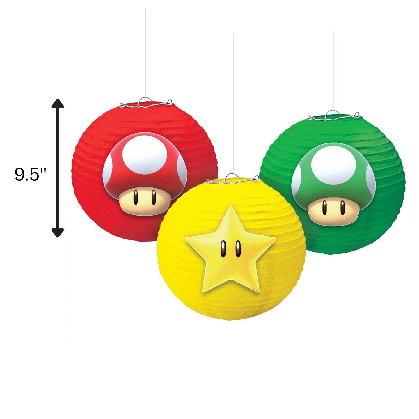 Super Mario Brothers Multicolor Lanterns - 9.5" (Pack of 3) - Vibrant Party Decor with Exciting Add-Ons - Ideal for Themed Celebrations & Gamers