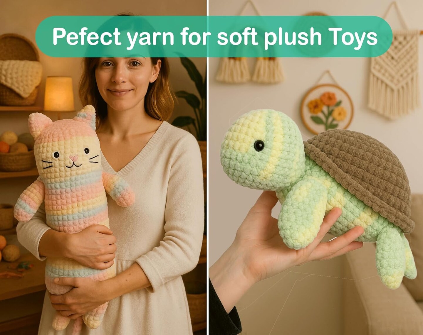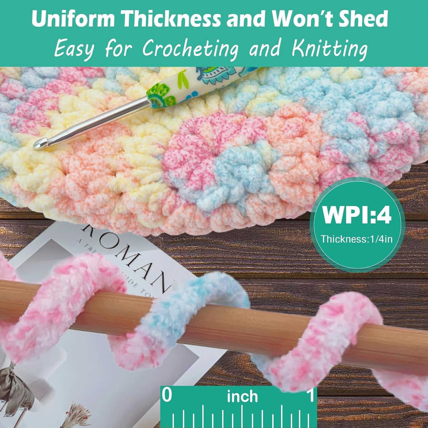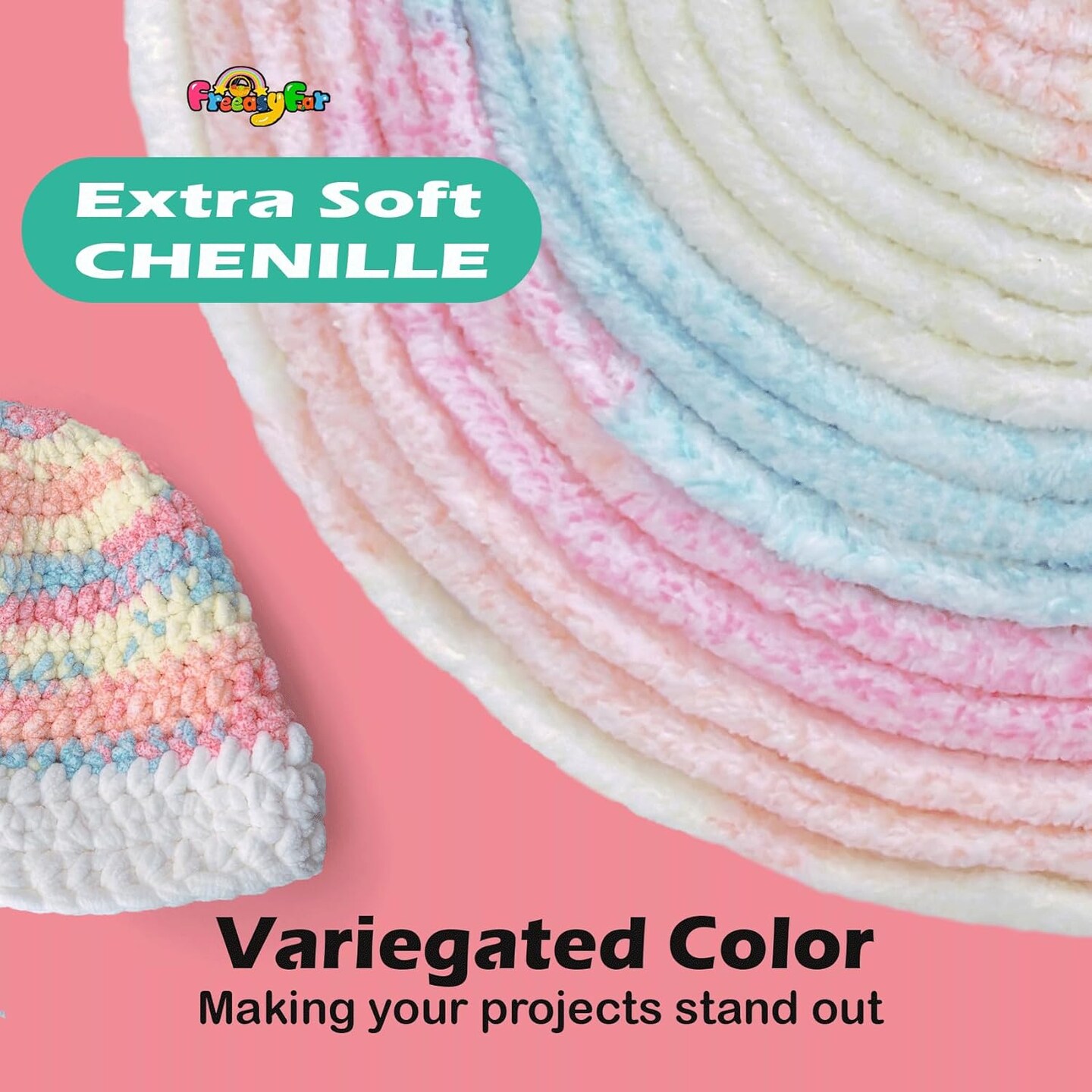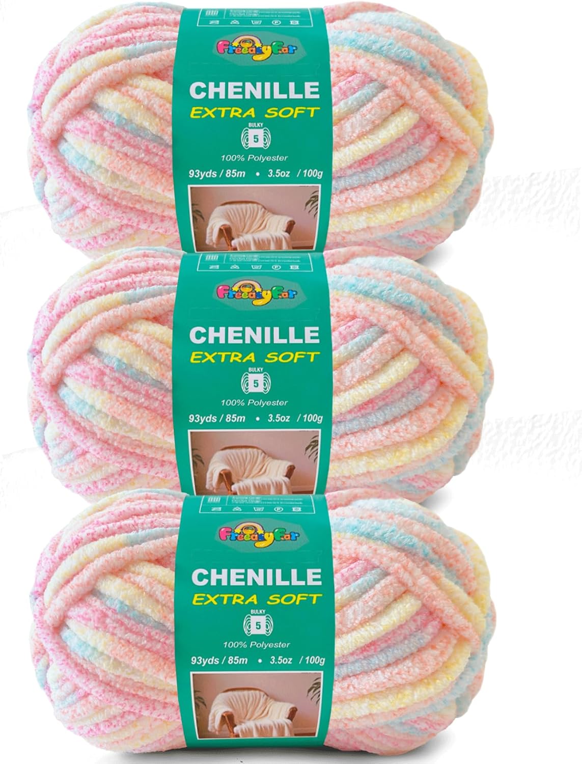 Super Soft Velvet Chenille Yarn - (Pastel Rainbow, 3 Pack)