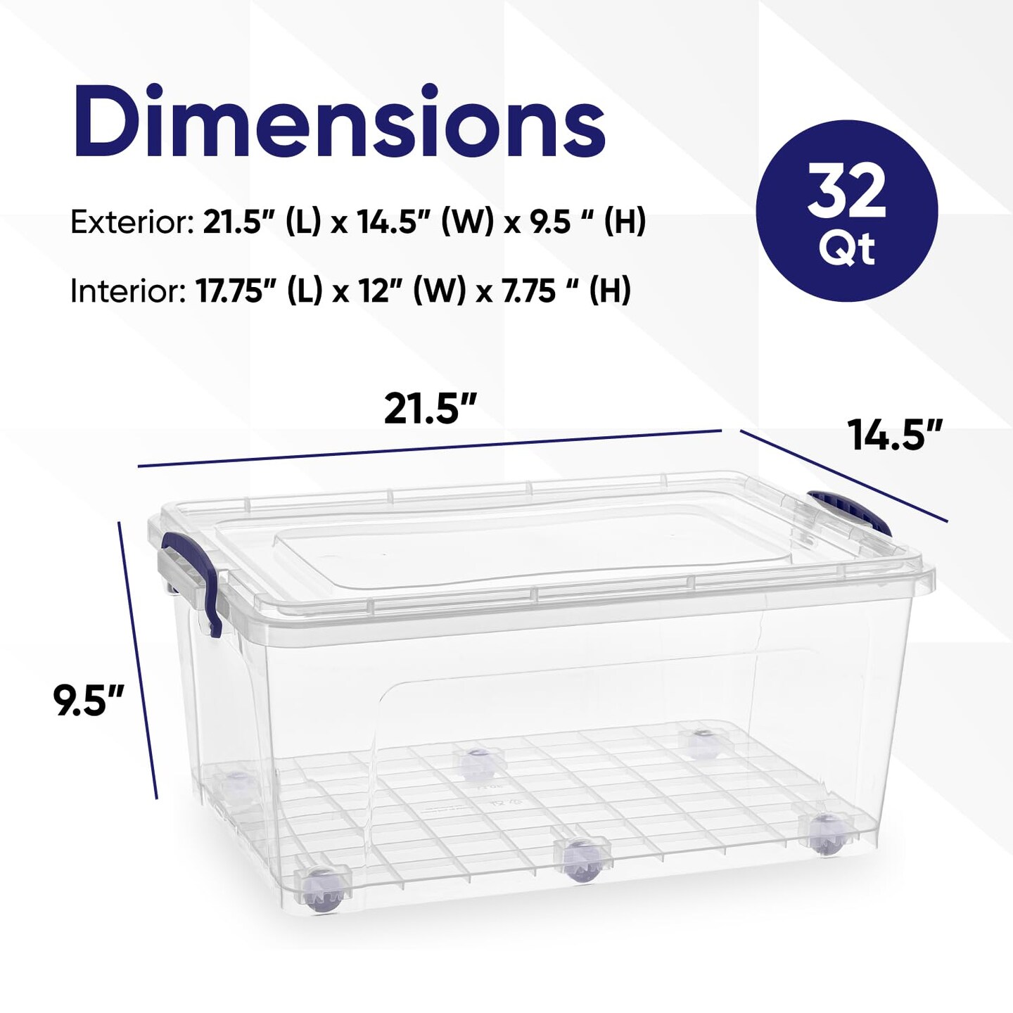 Superio Clear Storage Bin with Lid, Large Stackable Container with Lid, Wheeled Storage Box for Home, Tote for Garage, Storage, Clothing
