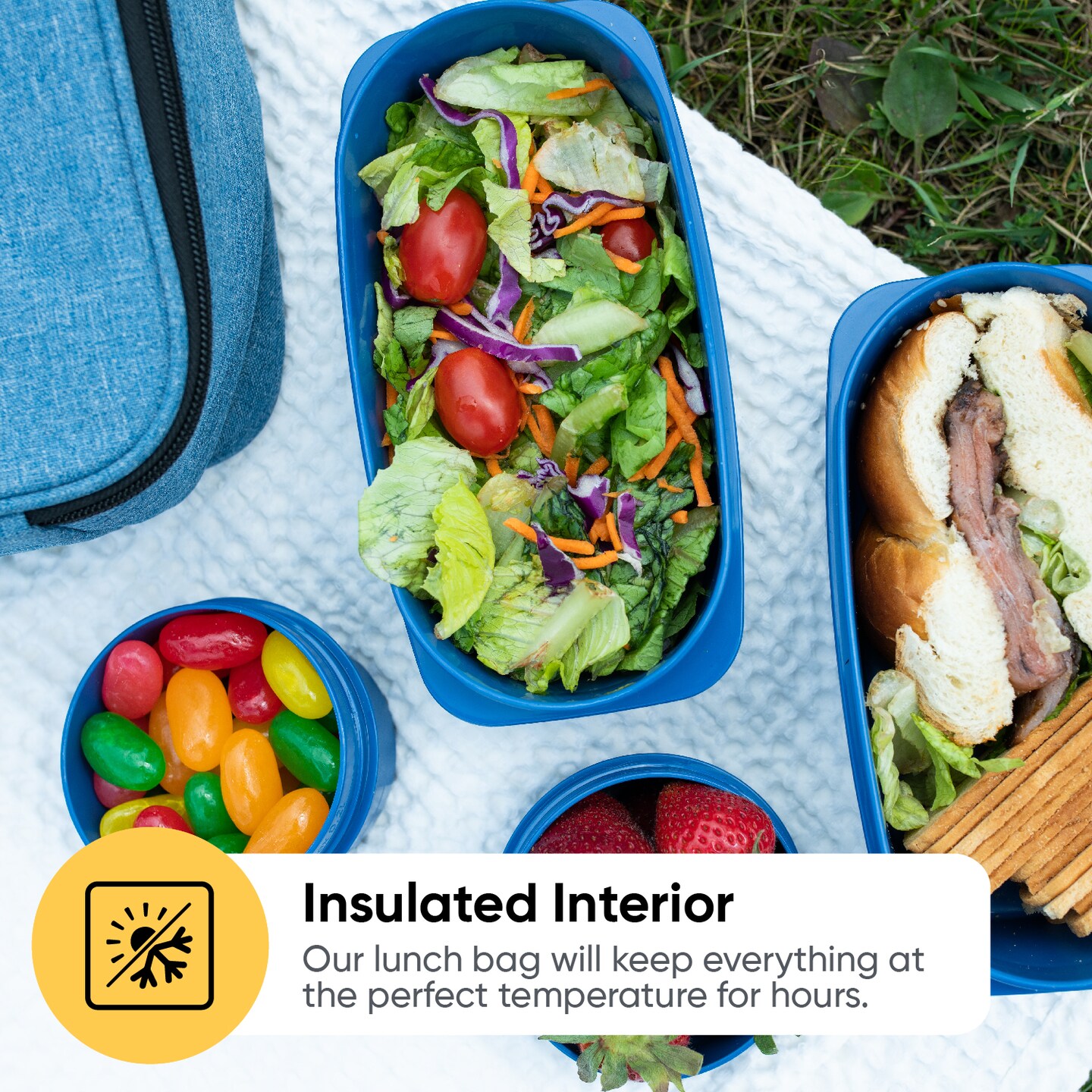 Superio Insulated Lunch Bag with Containers, Thermal Lined Lunch Box, Denim Blue