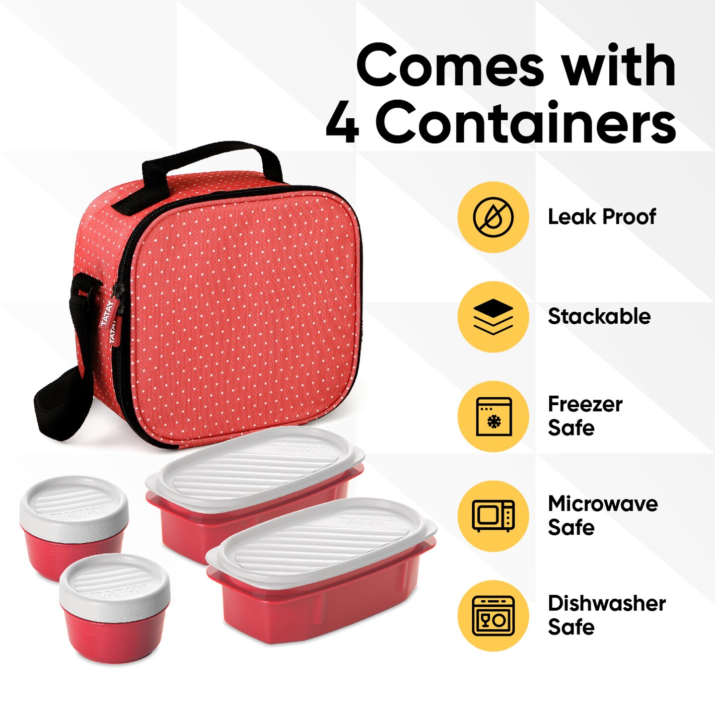 Superio Insulated Lunch Bag with Containers, Thermal Lined Lunch Box, Red