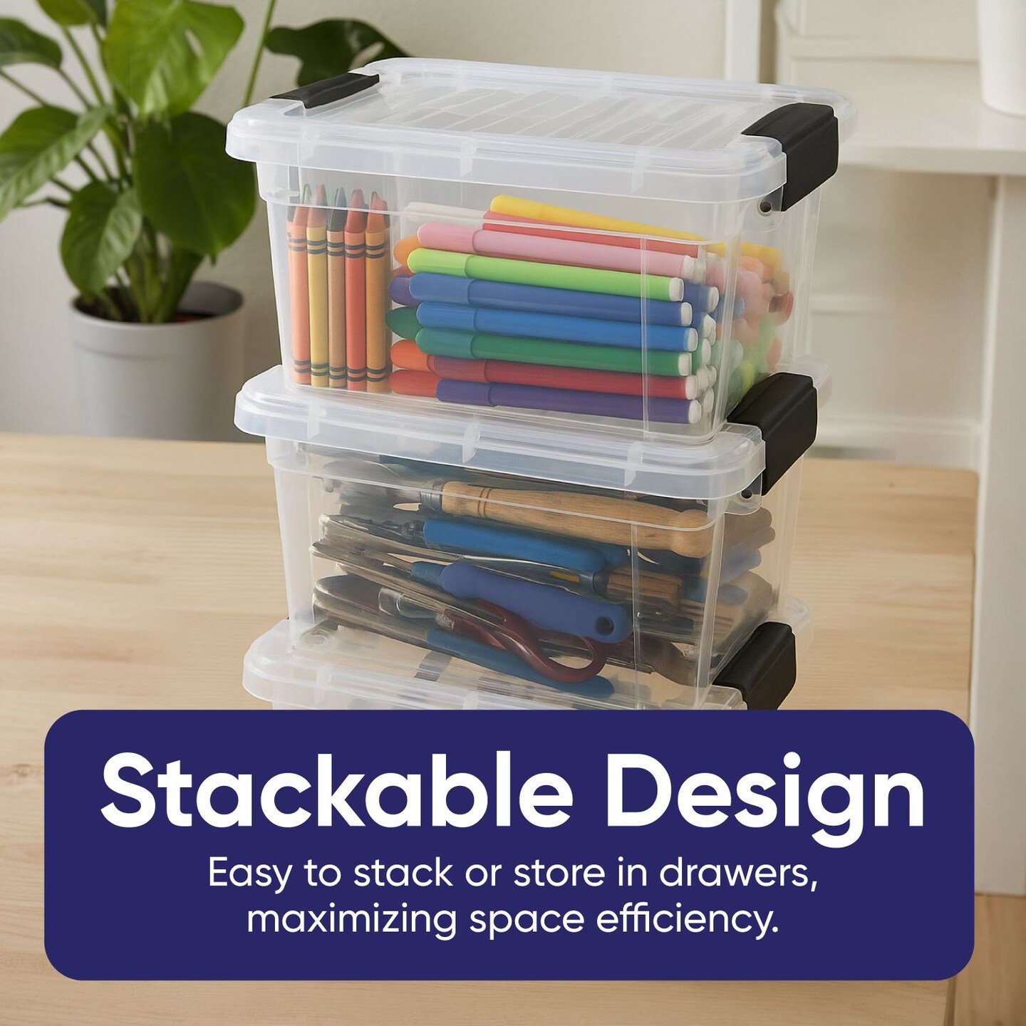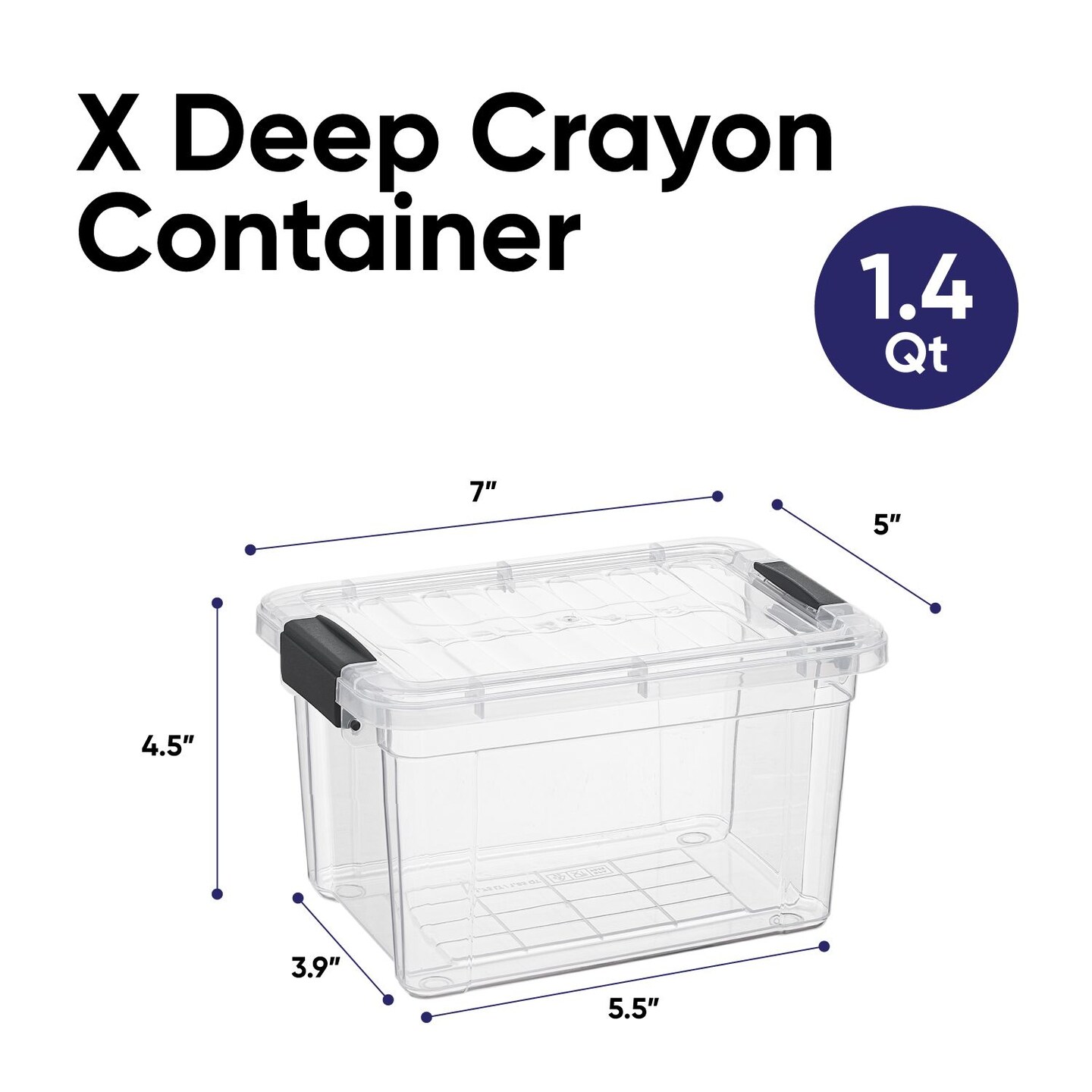 Superio Mini Plastic Crayon Box Storage Container Clear Plastic Bin with Lid Organizing Box 1.4 Qt.