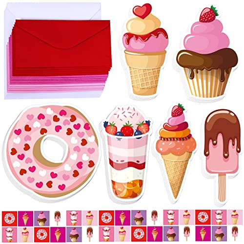 Supla 30 Sets Valentine's Day Cards Scratch Sniff Strawberry Scented Valentine Cards Donut Ice Cream Cupcake Sweet Cards with Stickers Envelopes for Kids Party Favor School Classroom Gift Exchange