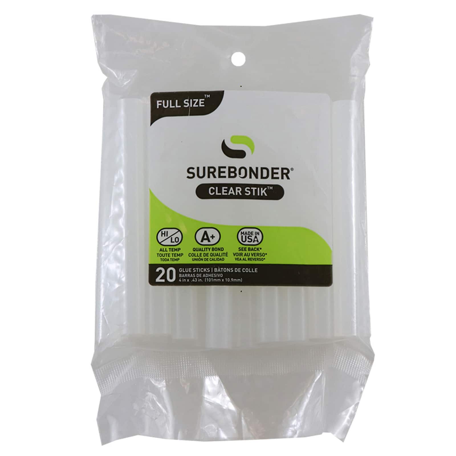 Surebonder® Full Size 4" Dual Temp Clear Hot Glue Sticks, 6 Packs of 20