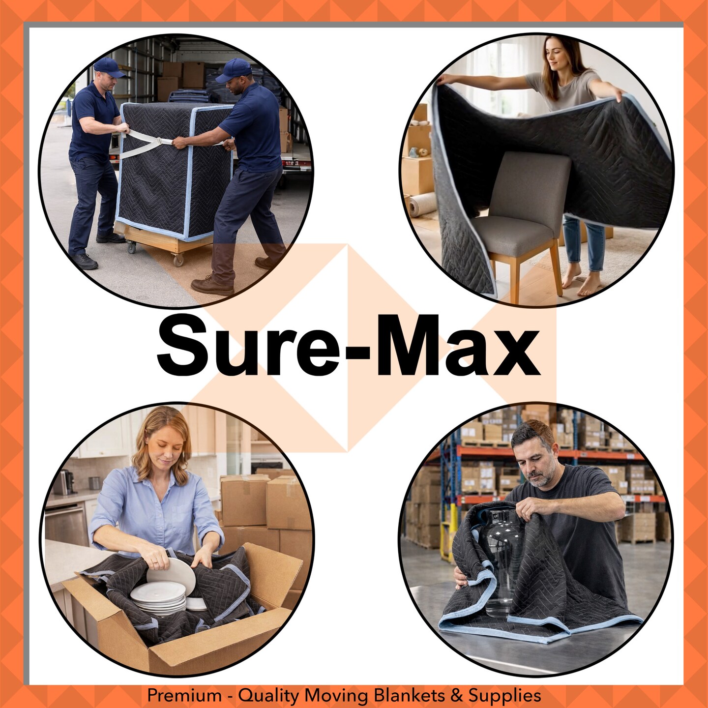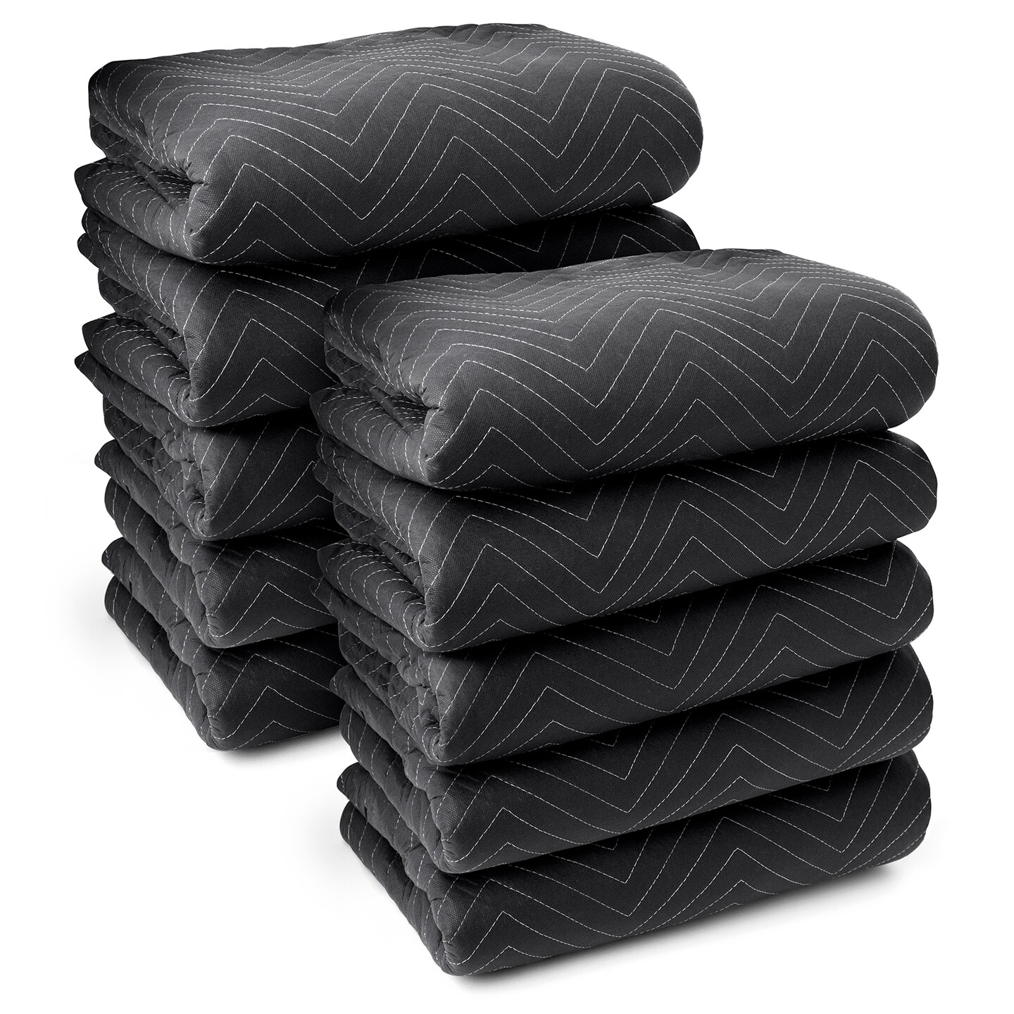 Sure-Max 10 Moving & Packing Blankets - Ultra Thick Pro - 80" x 72" (65 lb/dz weight) - Professional Quilted Shipping Furniture Pads Black